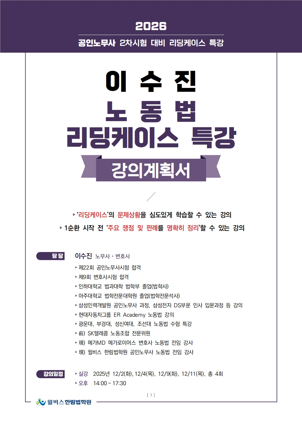 2026_한림법학원 공인노무사_강의계획서_리딩케이스 특강(이수진 강사).pdf