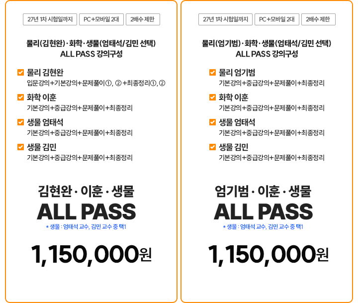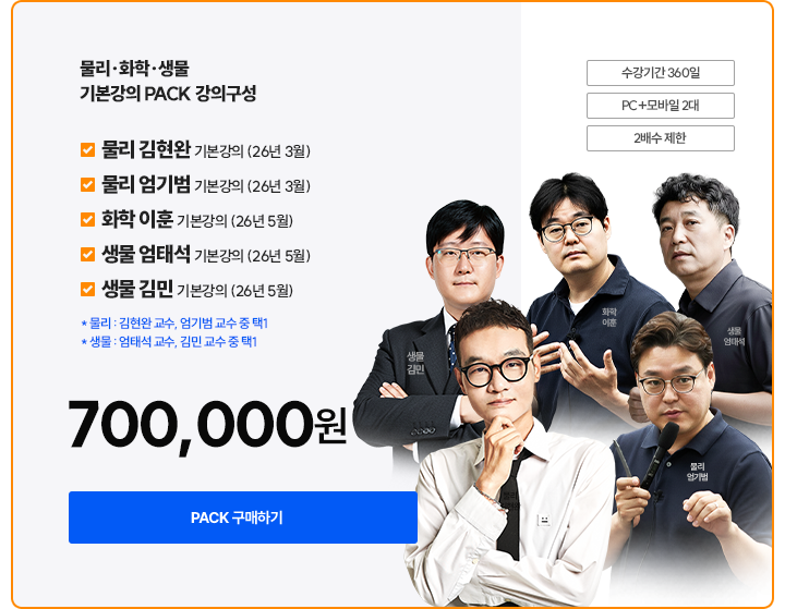- 본 상품은 2026년 진행되는 2027년 변리사 1차 시험 대비 물리, 화학, 생물 강의입니다.