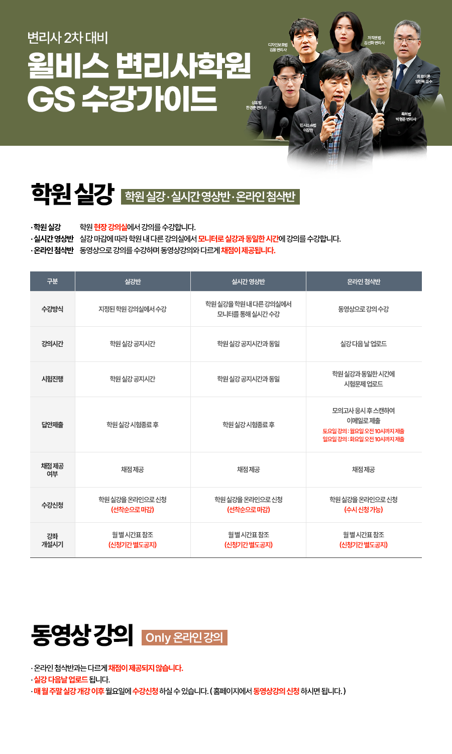 윌비스 변리사학원 GS 학원강의 수강안내(실강/실영상/온첨반)