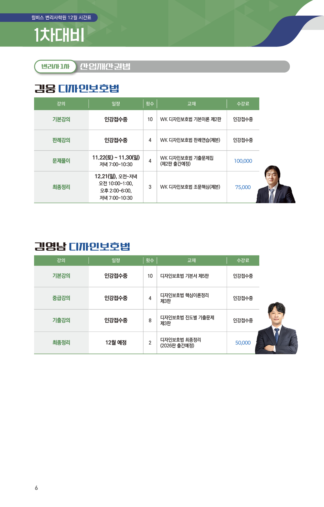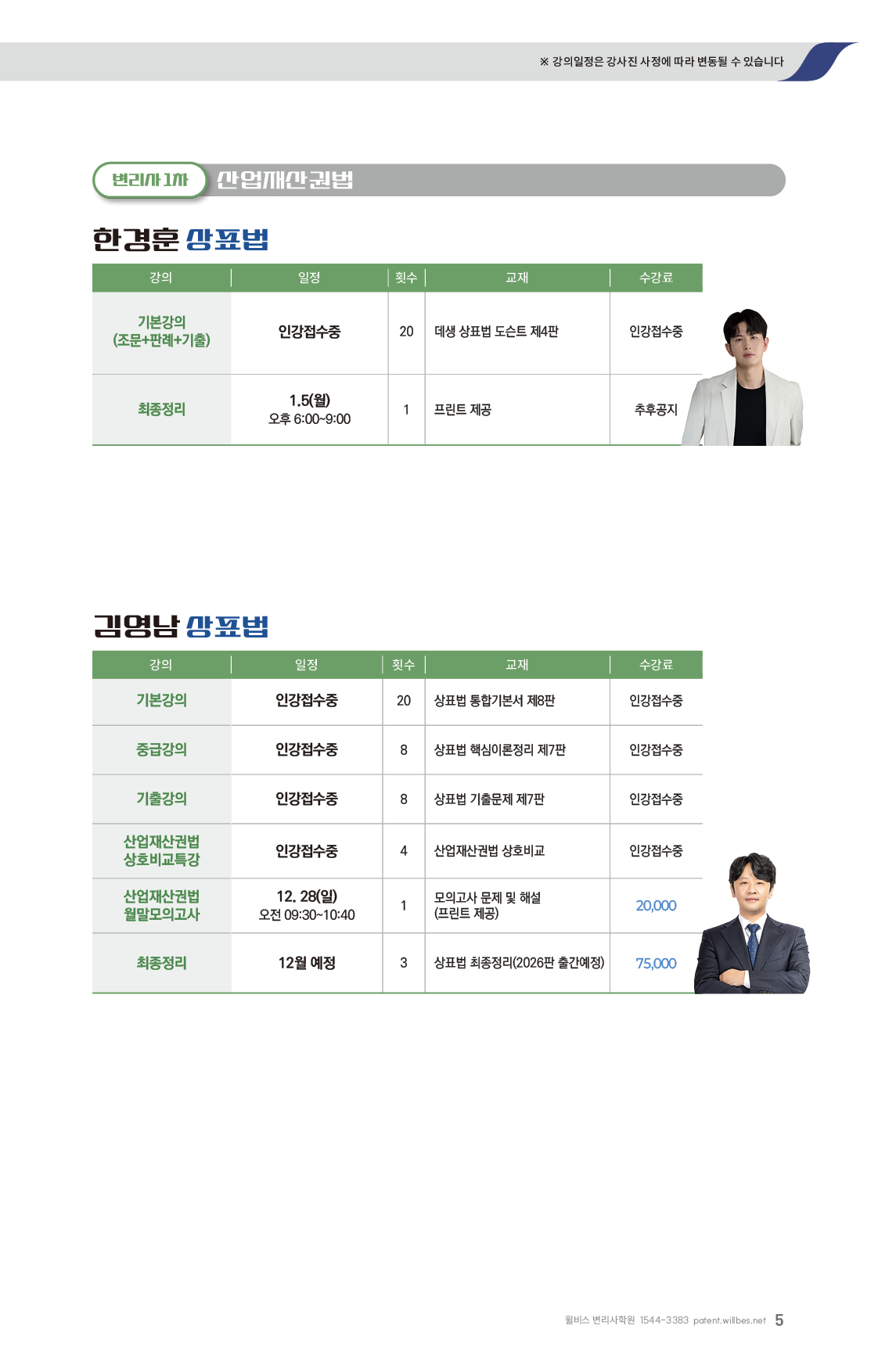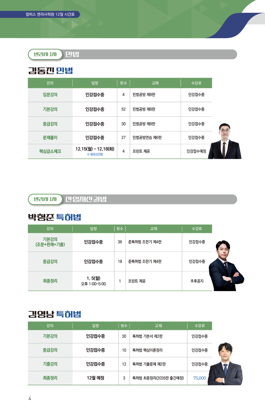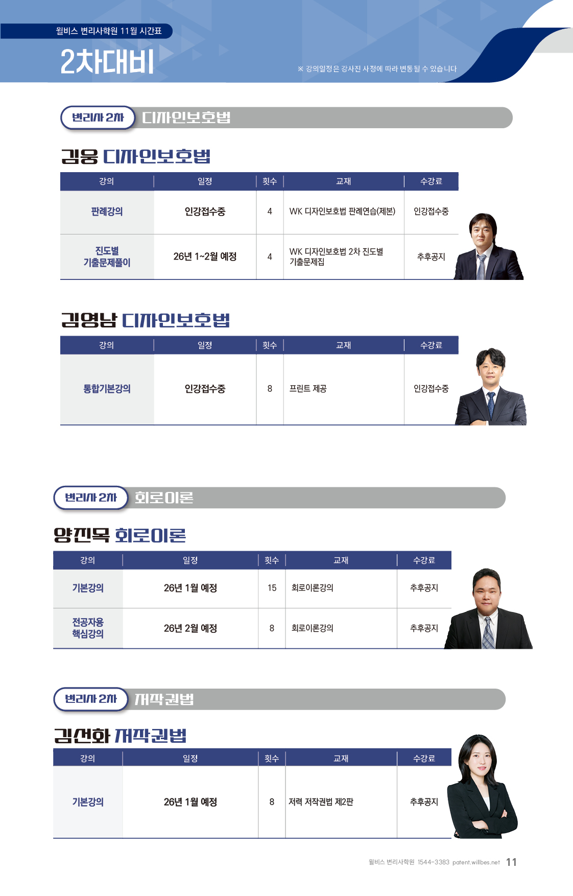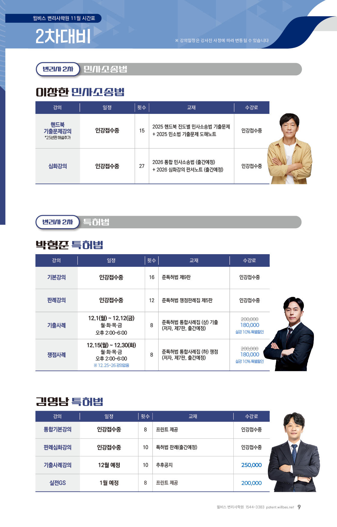 [시간표] 윌비스 변리사학원 25년 12월 강의시간표 안내