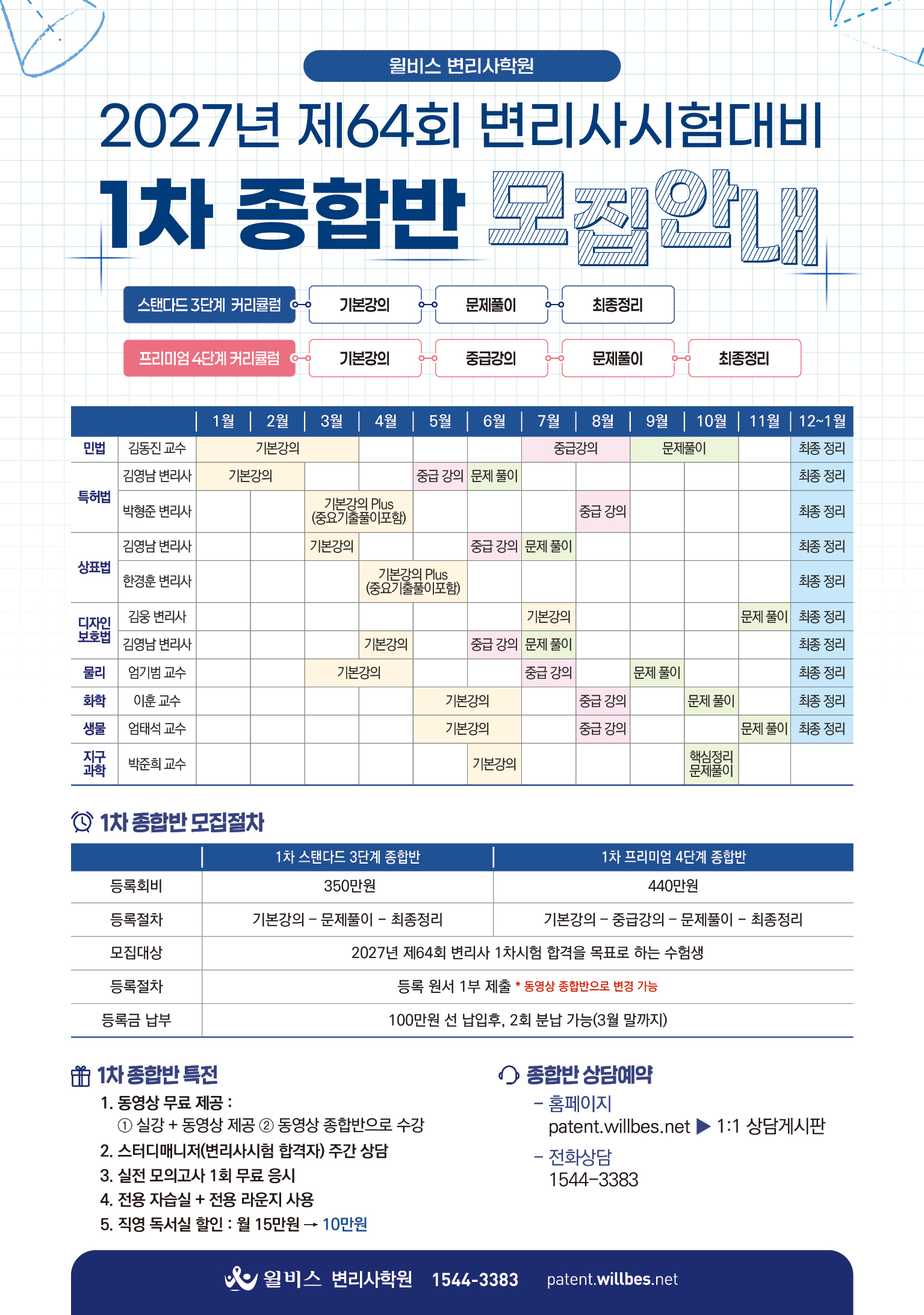 [종합반] 2027년 제64회 변리사 1차 종합반 모집안내