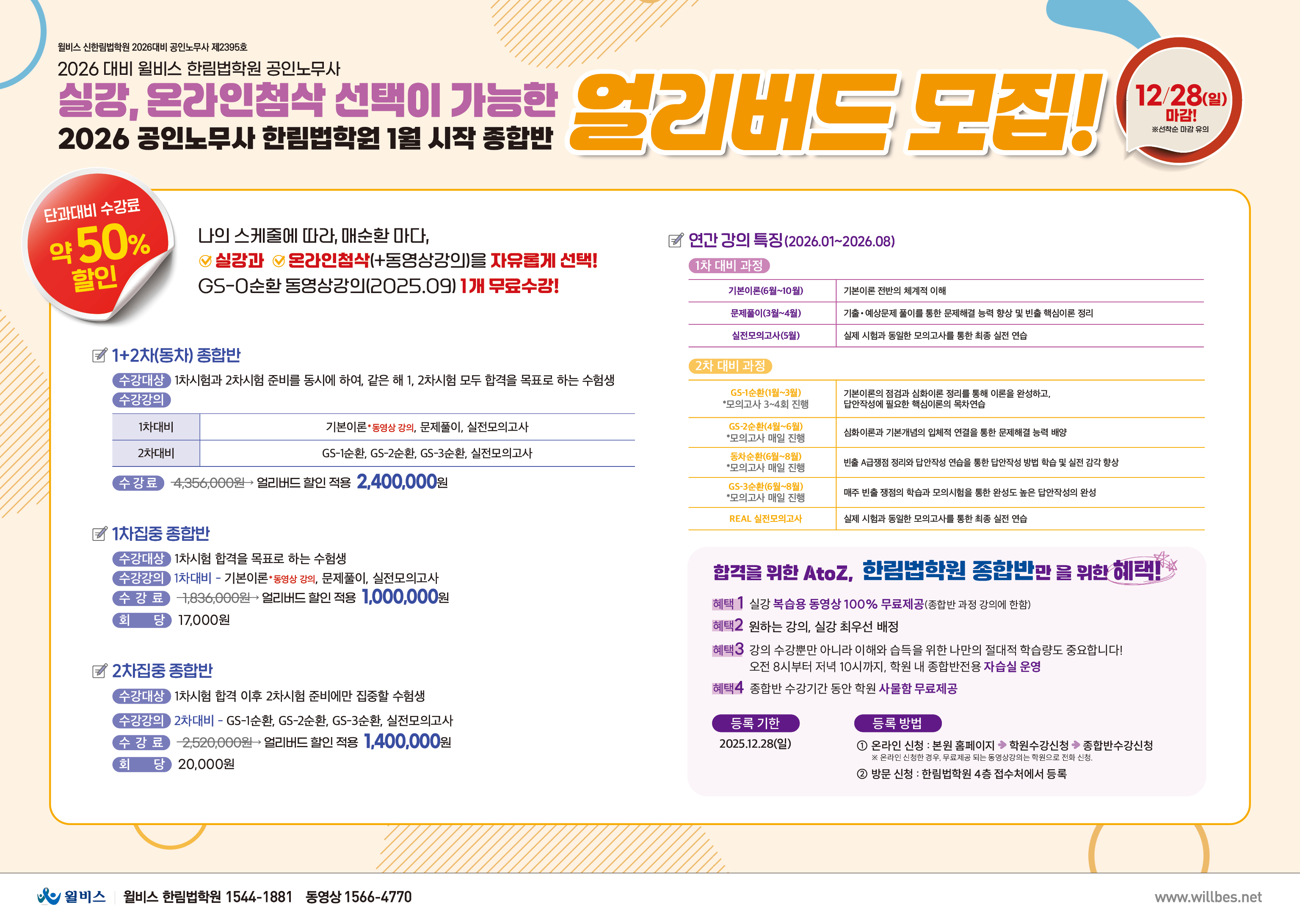 [공지] 2026대비 종합반 - 얼리버드 EVENT(~12/28(일) 마감)