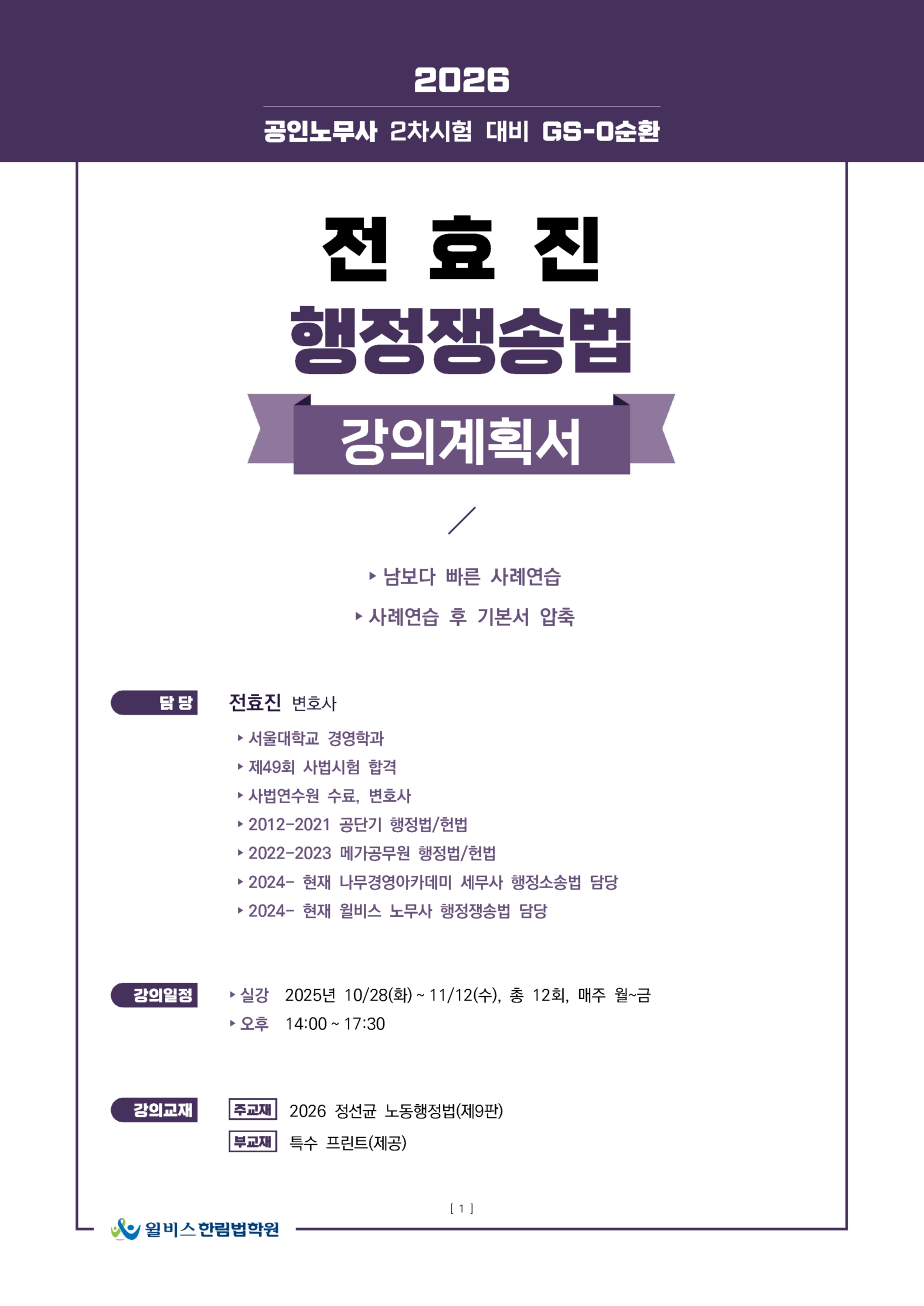 2026_한림법학원 공인노무사_강의계획서_0순환 행정쟁송법 (전효진)_1.jpg