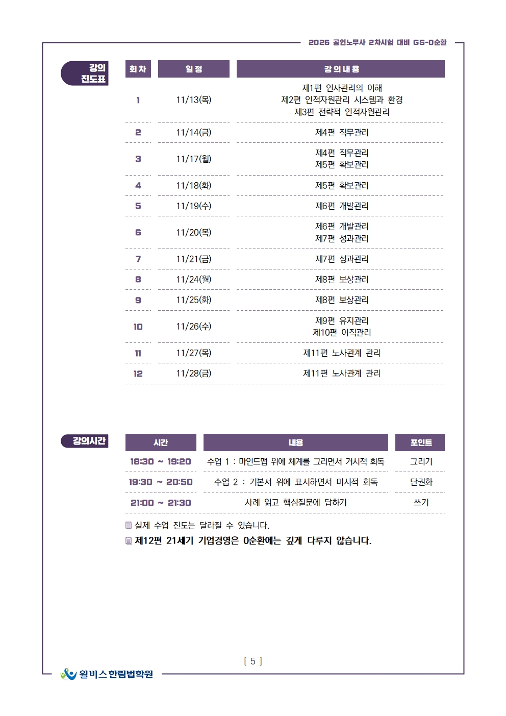 2026 GS-0순환 오은지 인사노무관리론, 강의계획서
