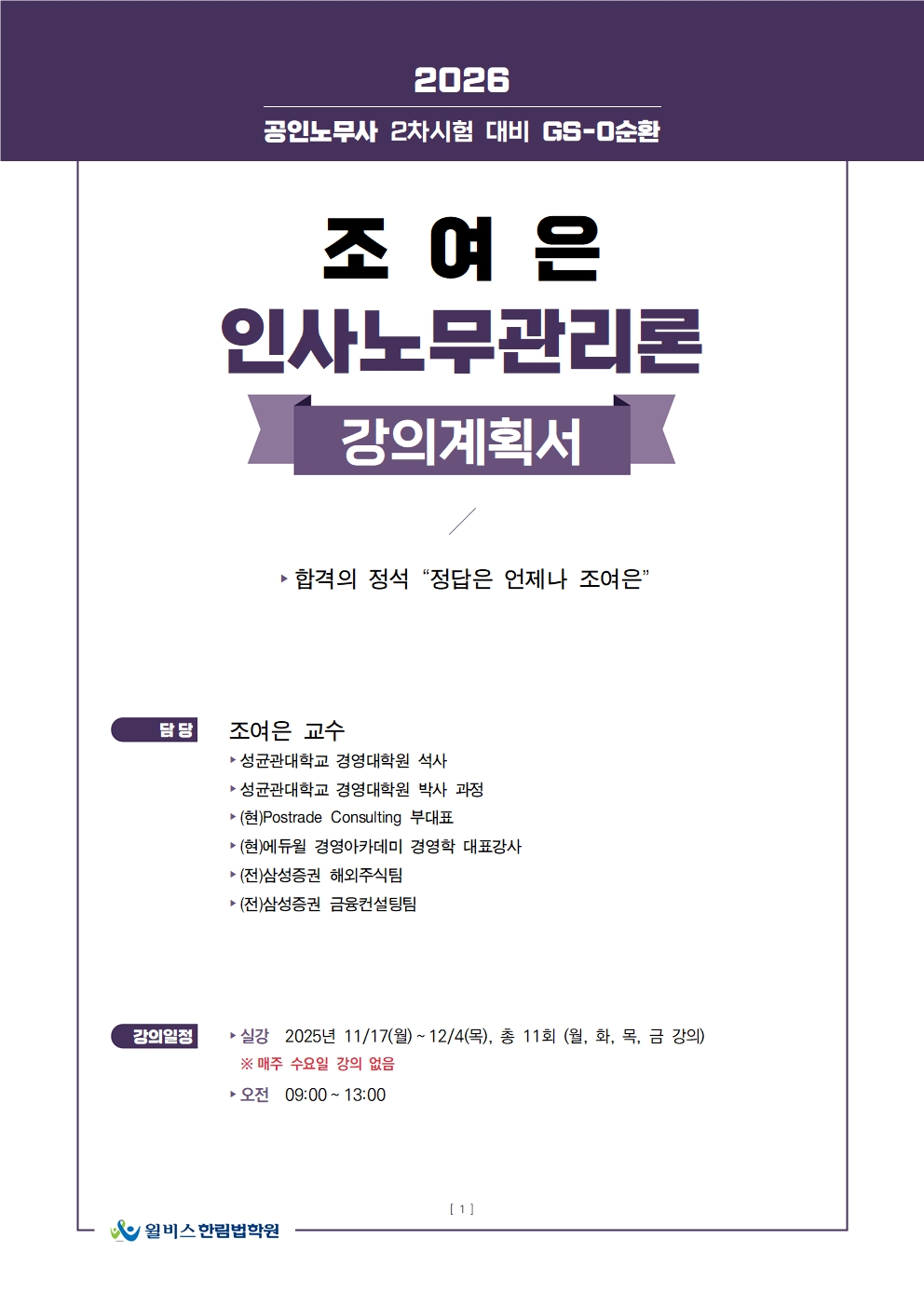2026 GS-0순환 조여은 인사노무관리론, 강의계획서