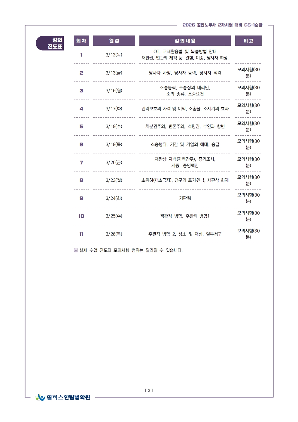 2026 GS-1순환 임준기 민사소송법, 강의계획서