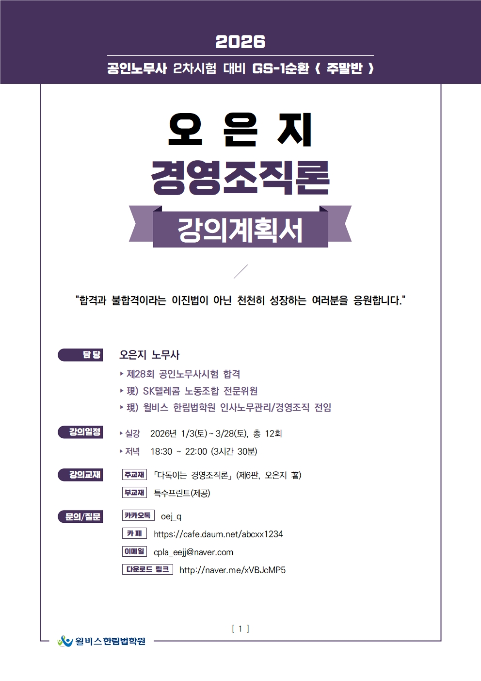 2026 GS-1순환 오은지 경영조직론 주말반, 강의계획서