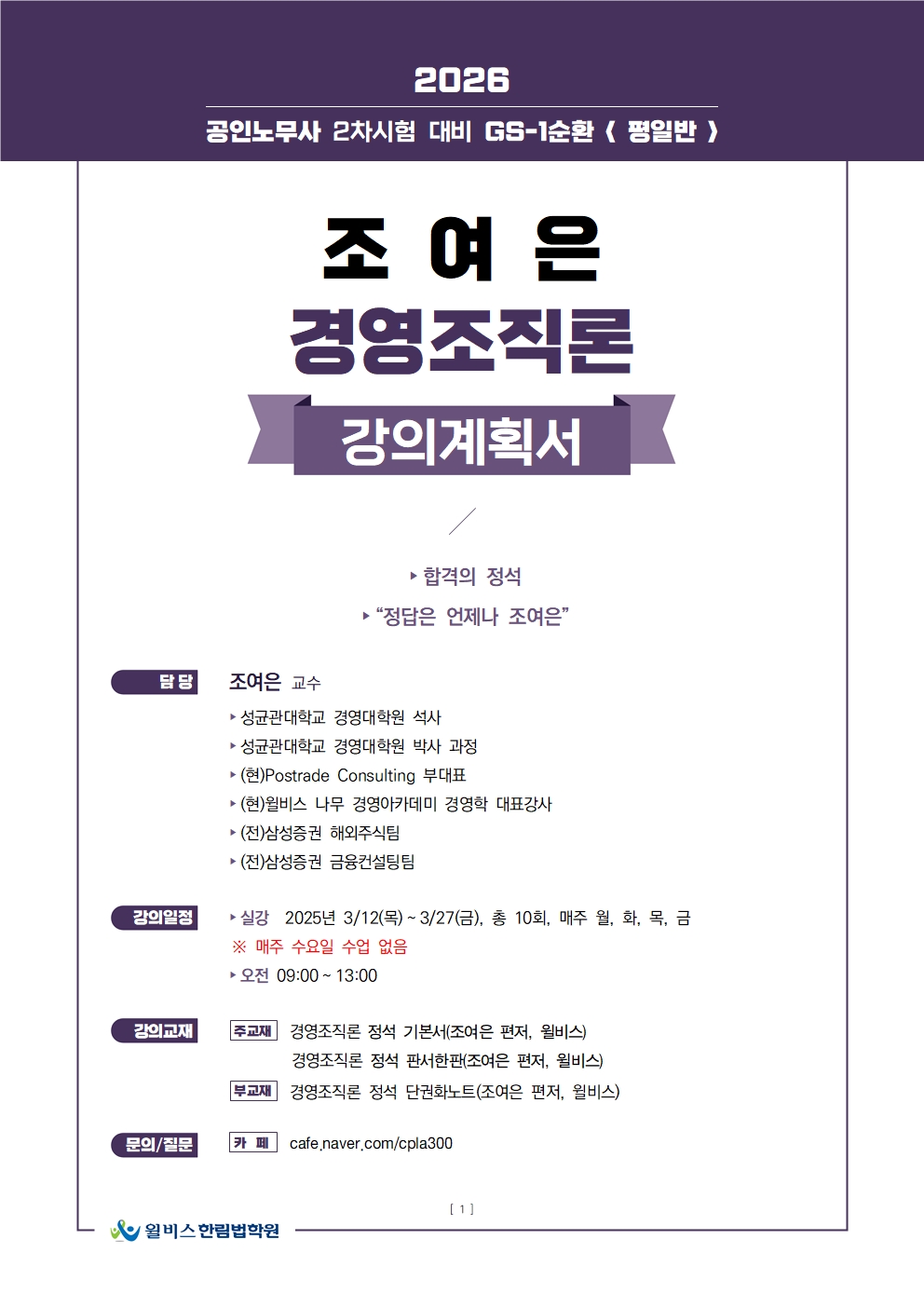2026_한림법학원 공인노무사_강의계획서_1순환_경영조직론_조여은 강사.pdf