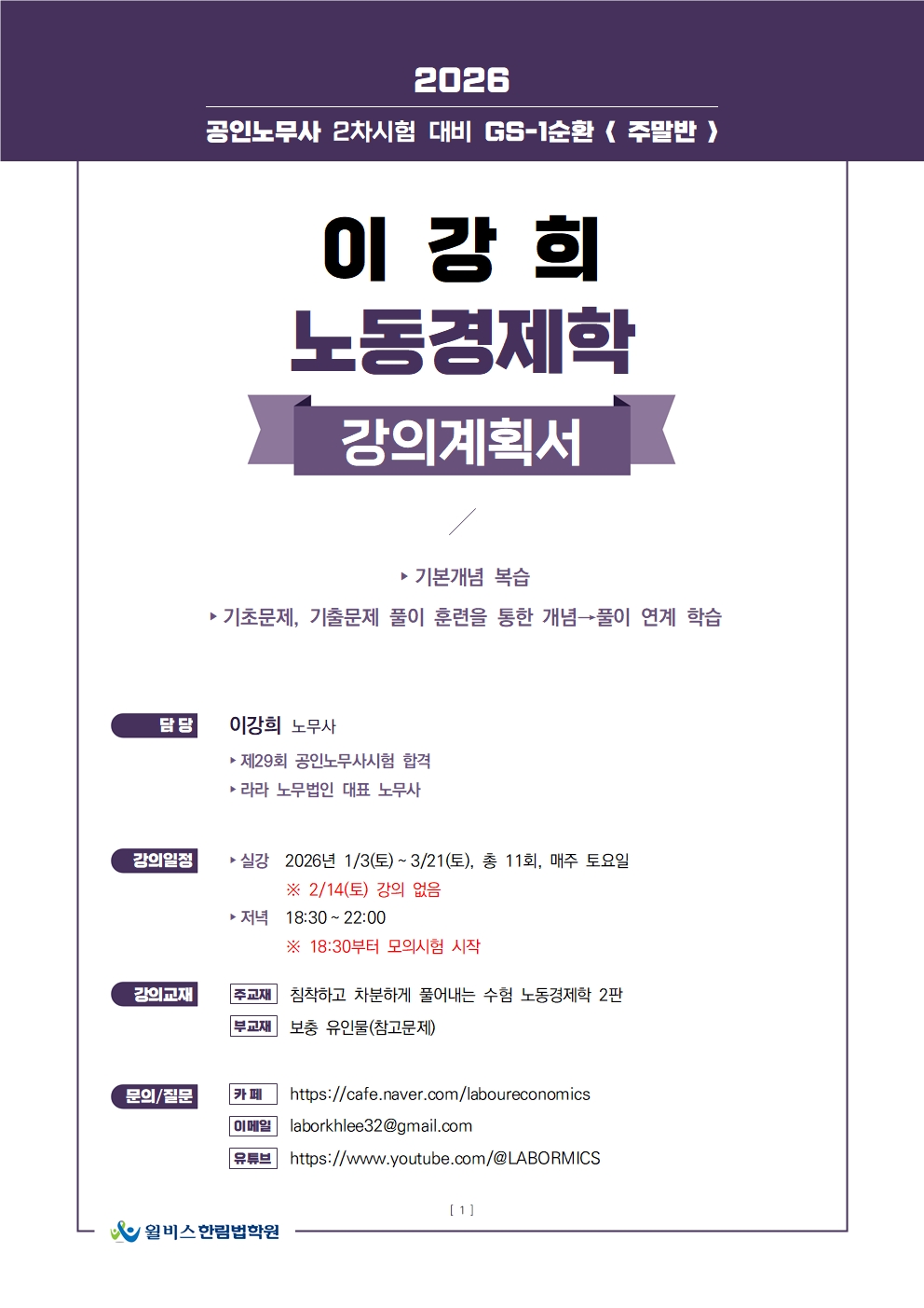 2026 GS-1순환 이강희 노동경제학 주말반, 강의계획서