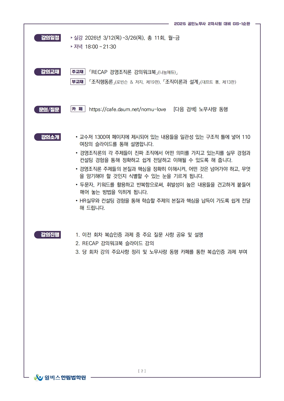 한림법학원_2026 1순환 강의계획서_경영조직론 정준모(평일반)002.jpg
