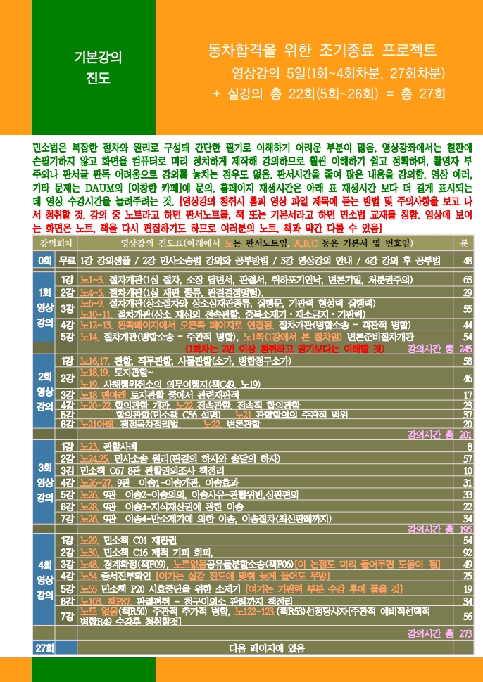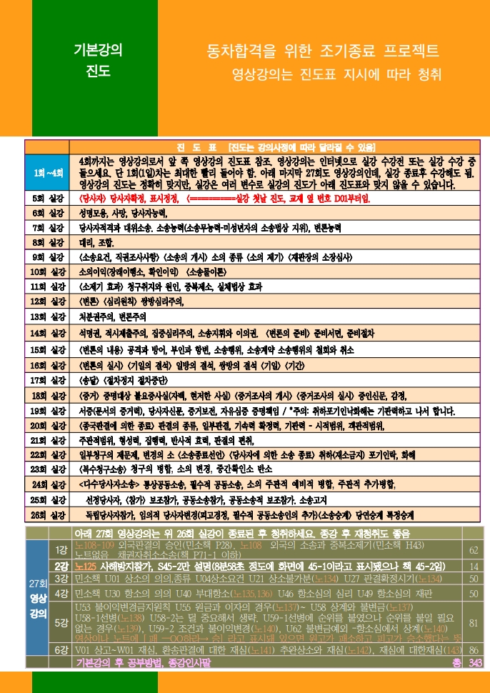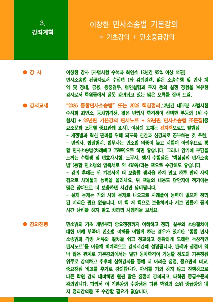 이창한 교수 민사소송법 기본강의 강의계획서 입니다.