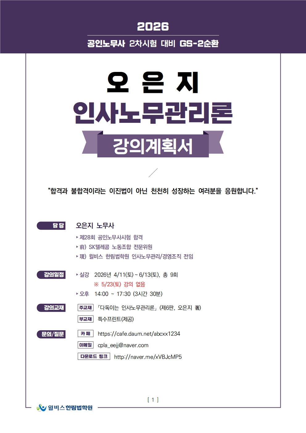 2026 GS-2순환 오은지 인사노무관리론, 강의계획서