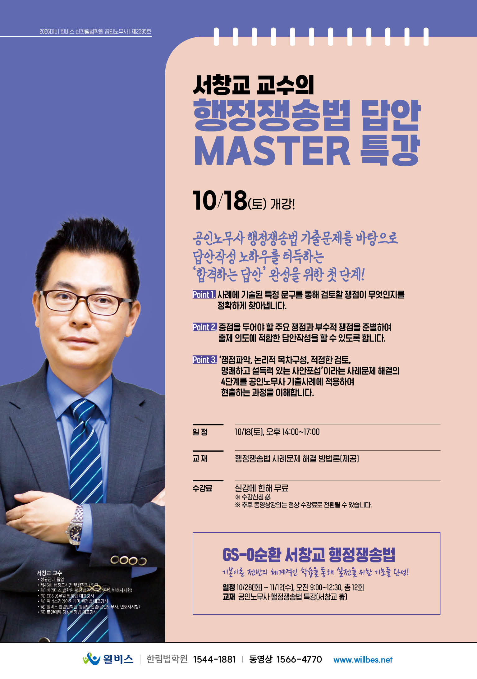 서창교 교수의 행정쟁송법 답안 MASTER 특강 - 10/18(토) 개강
