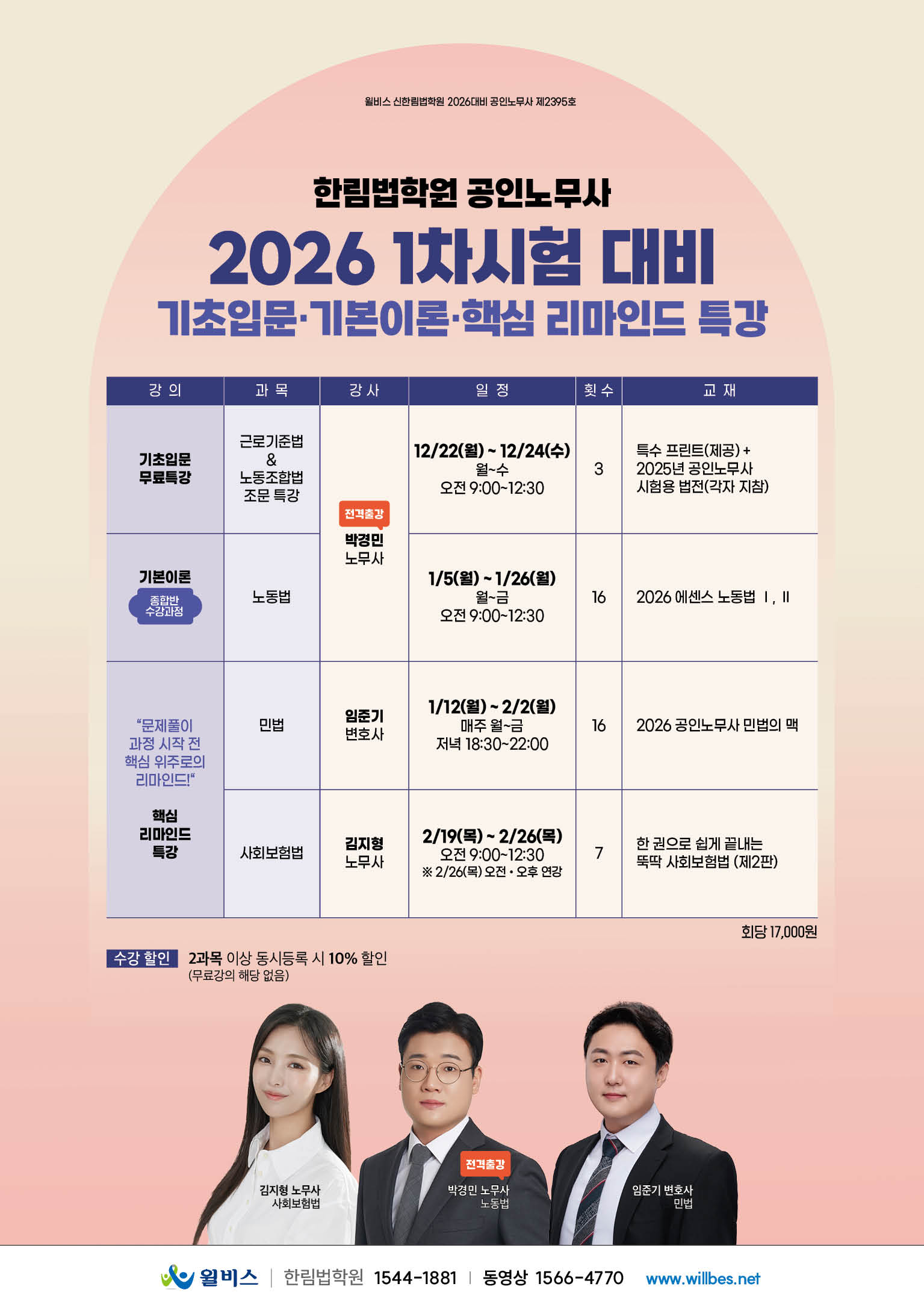 [시간표]2026년대비/1차 기초입문·기본이론·핵심 리마인드 특강 Timetable