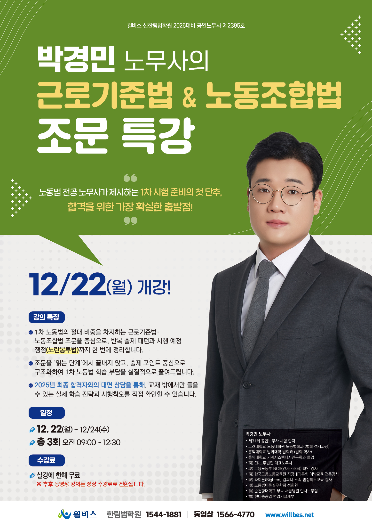 박경민 노무사의 근로기준법&노동조합법 조문특강 - 12/22(월) 개강