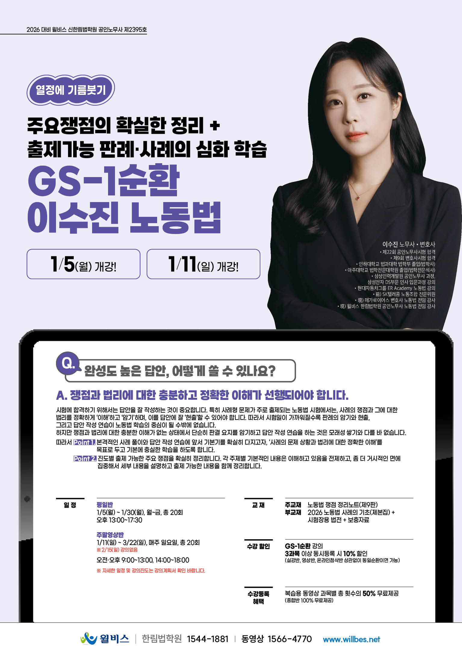 2026 2차 GS-1순환 이수진 노동법 - 1/5(월),1/11(일) 개강