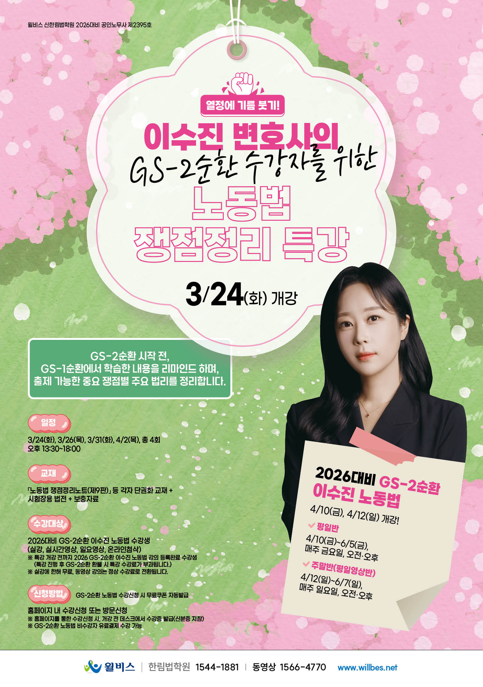 2026 이수진 노동법 GS-2순환 수강자를 위한 쟁점정리특강 - 3/24(화)개강