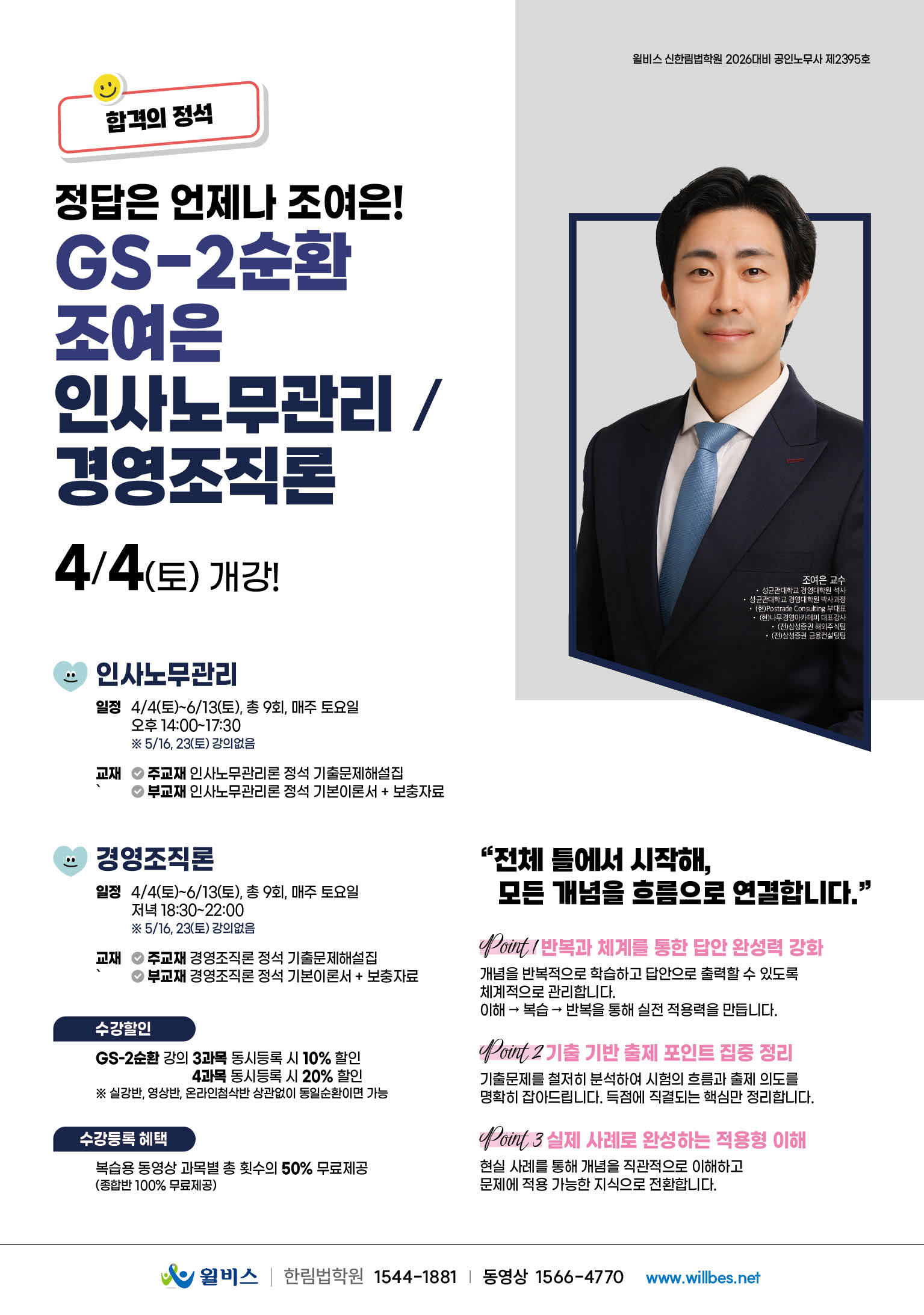 2026 2차 GS-2순환 조여은 인사노무관리론, 경영조직론 - 4/4(토) 개강
