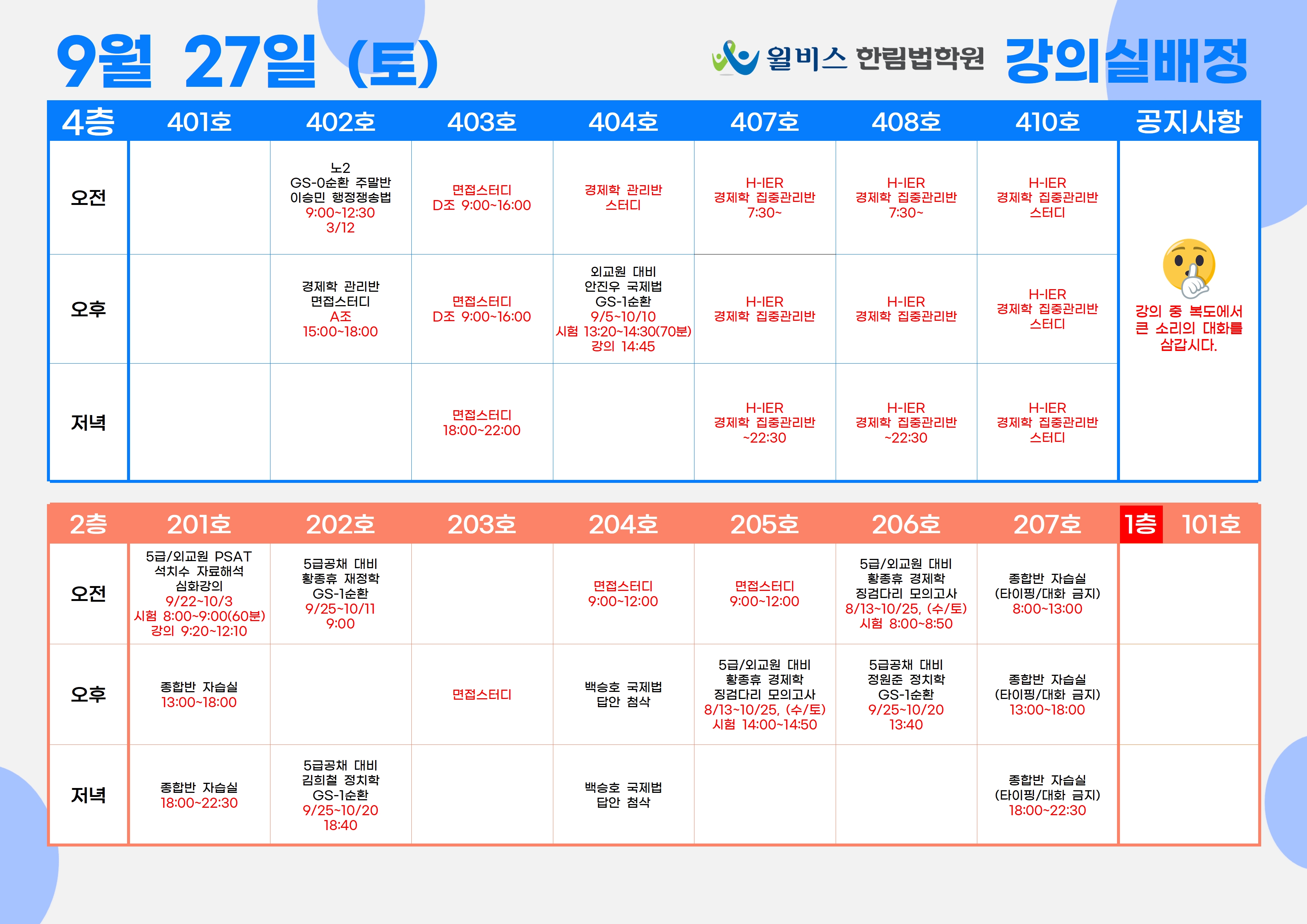 9월 27일(토) 강의실 배정표
