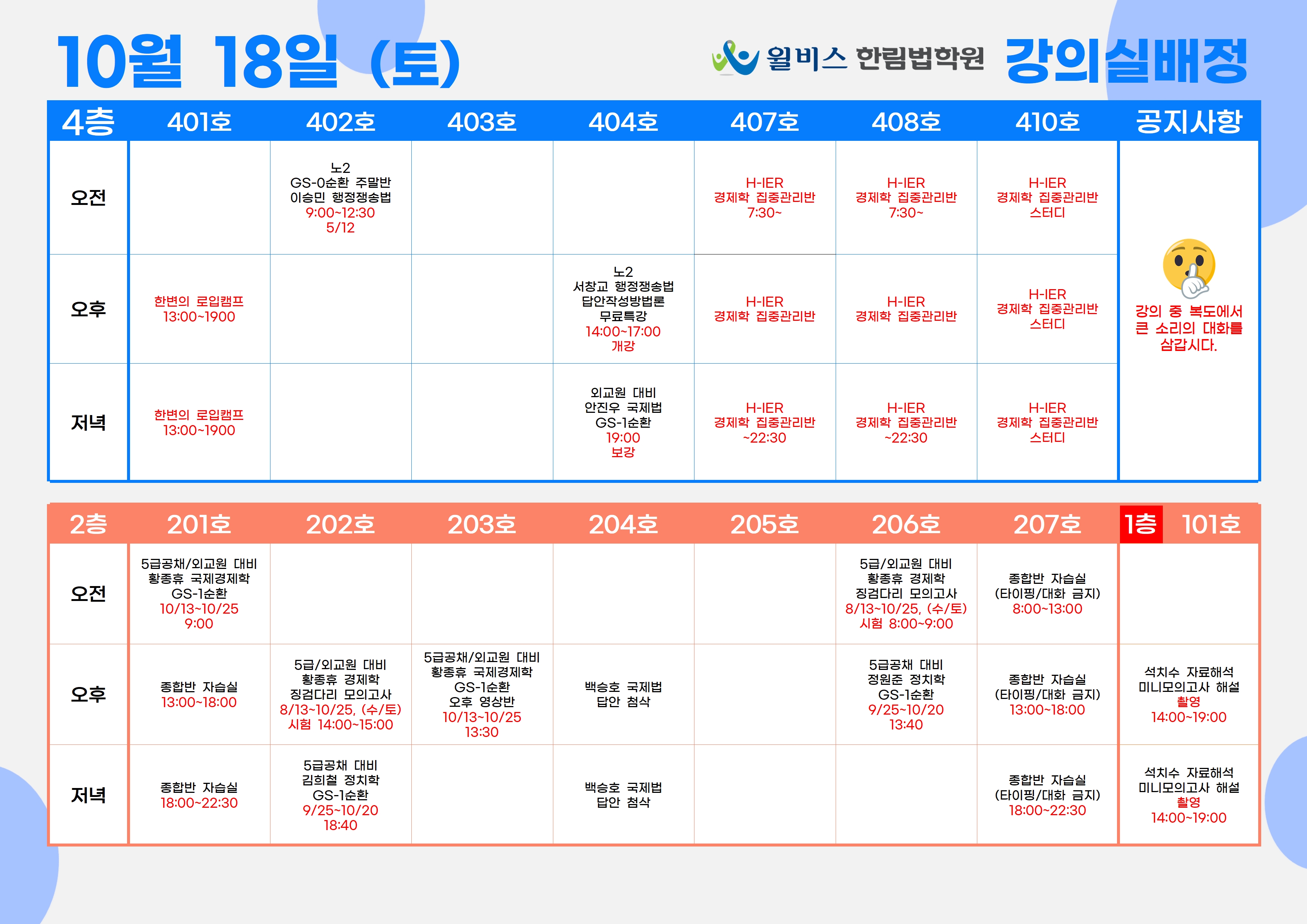10월 18일(토) 강의실 배정표