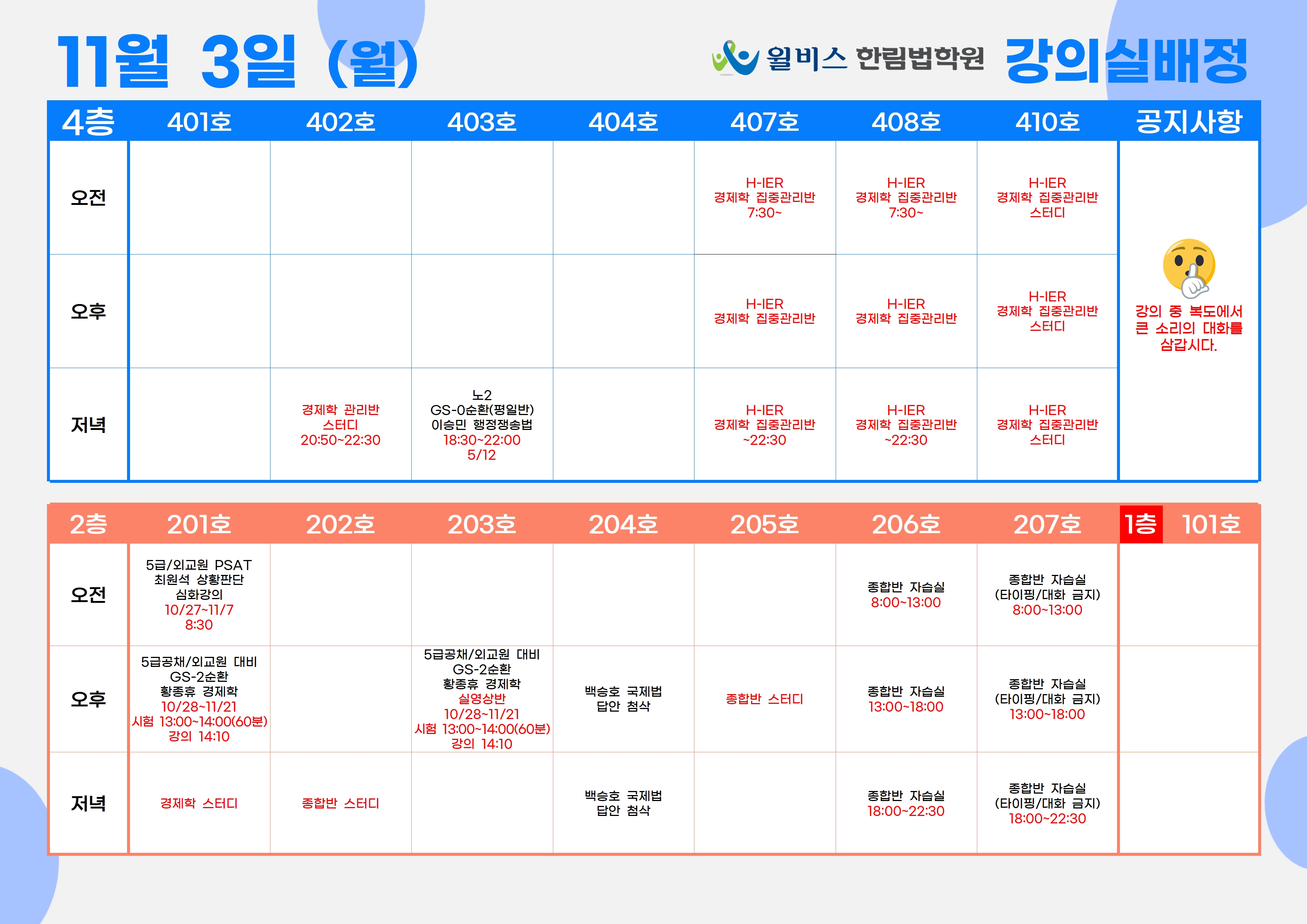 11월 3일(월) 강의실 배정표