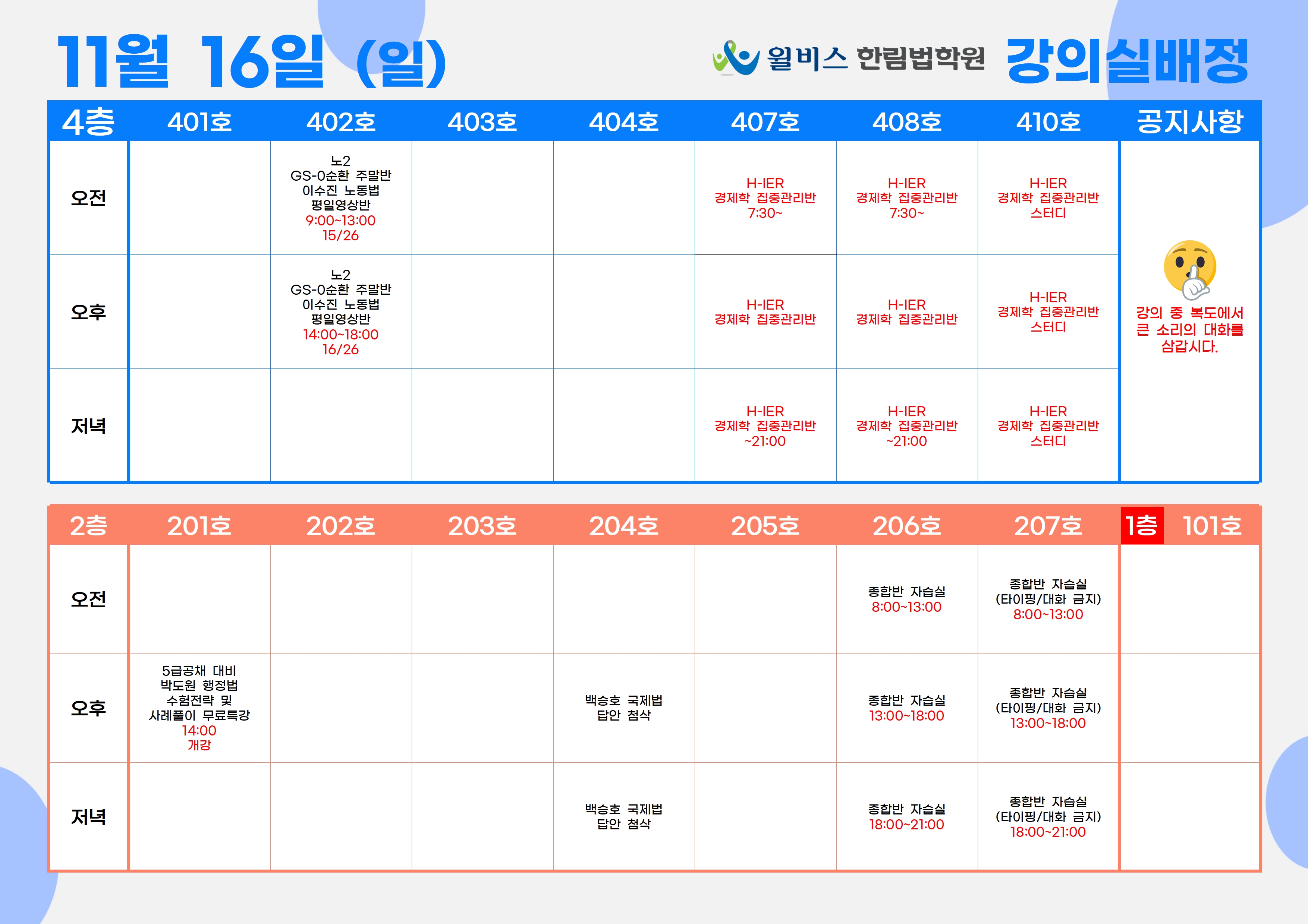 11월 16일(일) 강의실 배정표