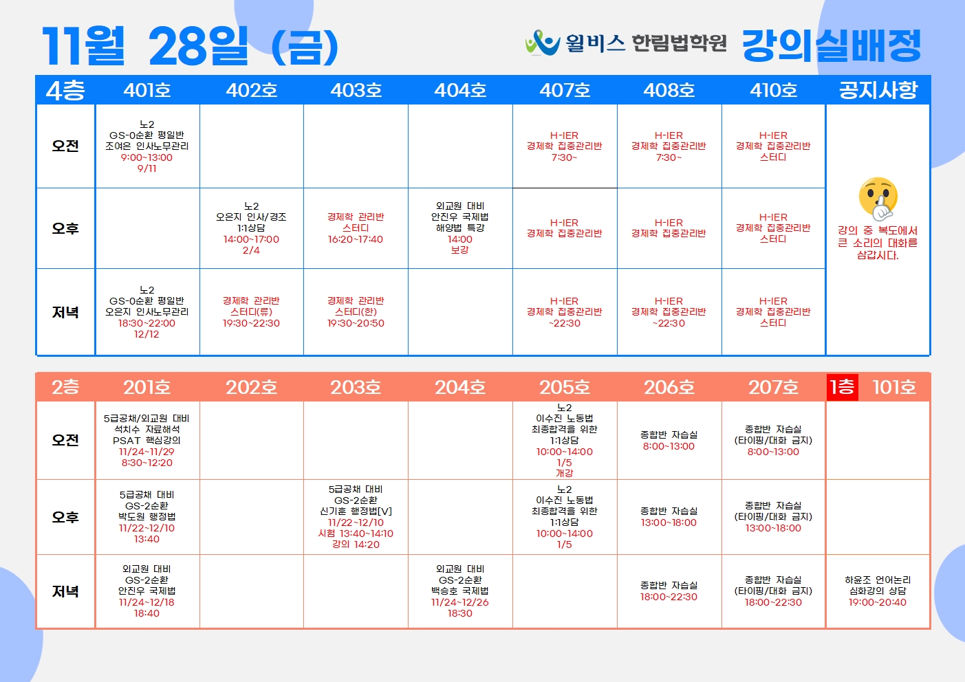 11월 28일(금) 강의실 배정표