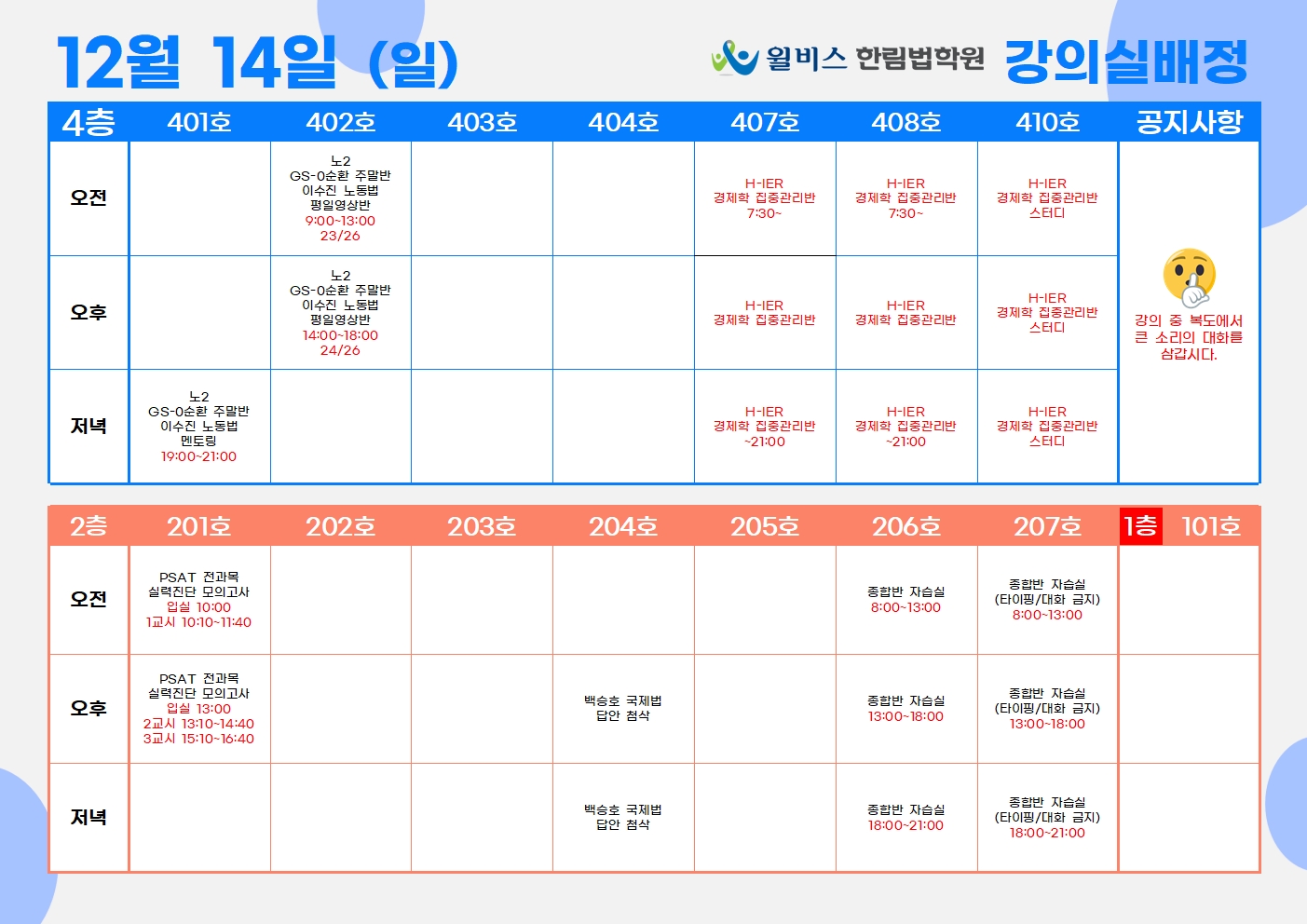 12월 14일(일) 강의실 배정표