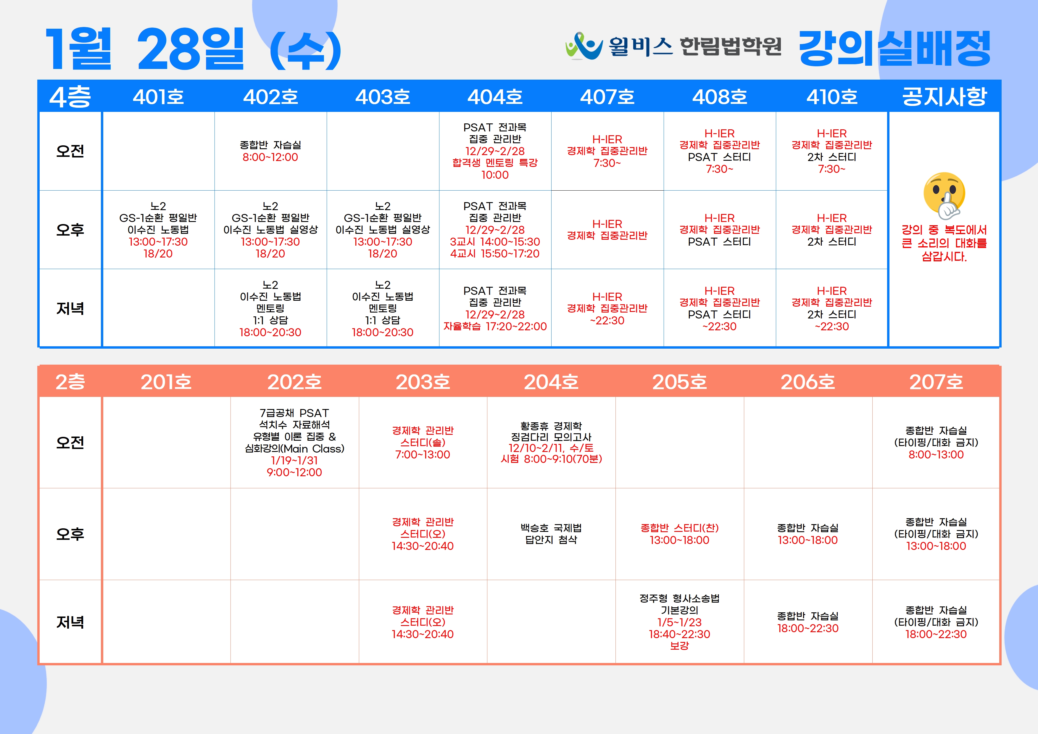 1월 28일(수) 강의실 배정표