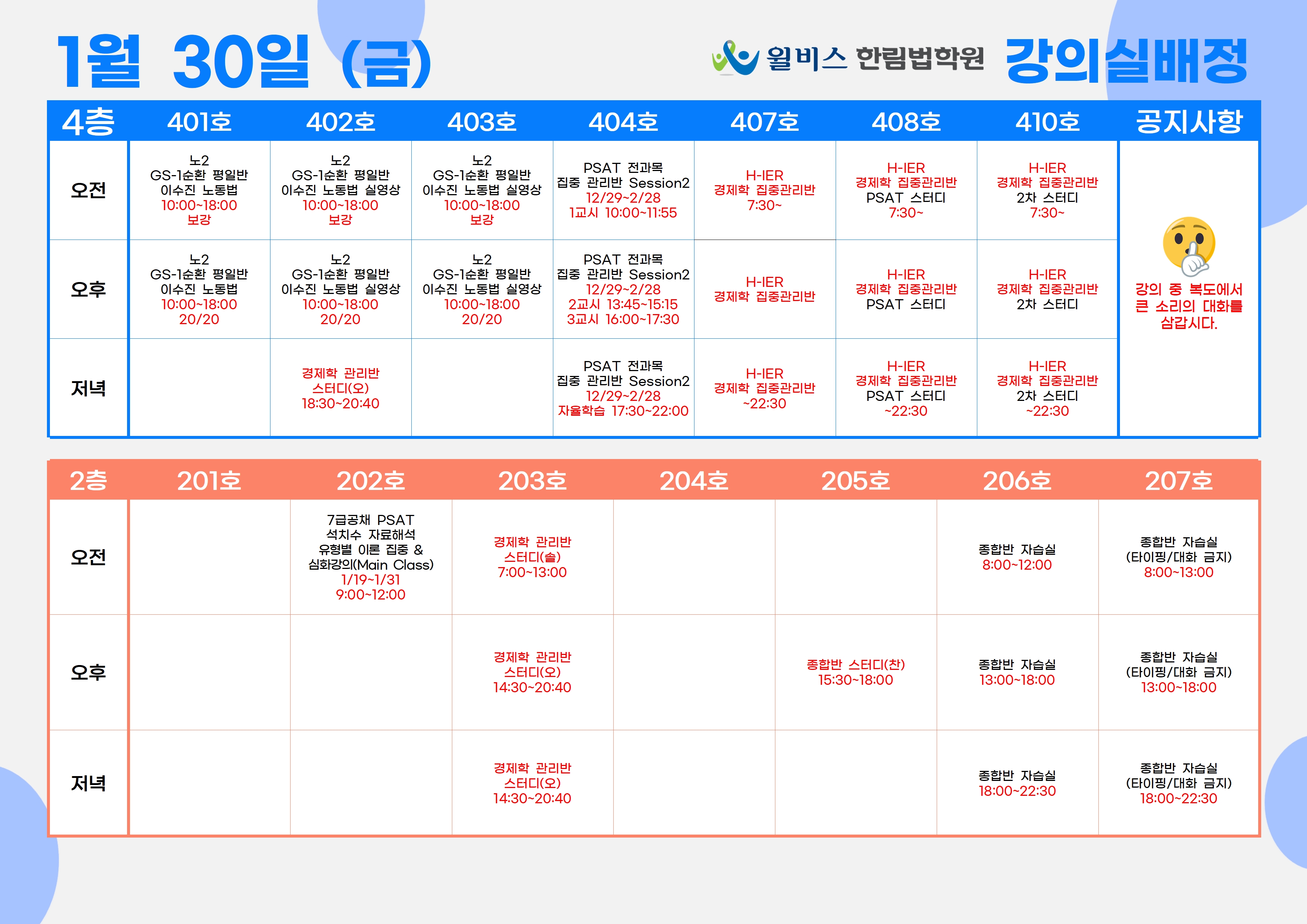 1월 30일(금) 강의실 배정표