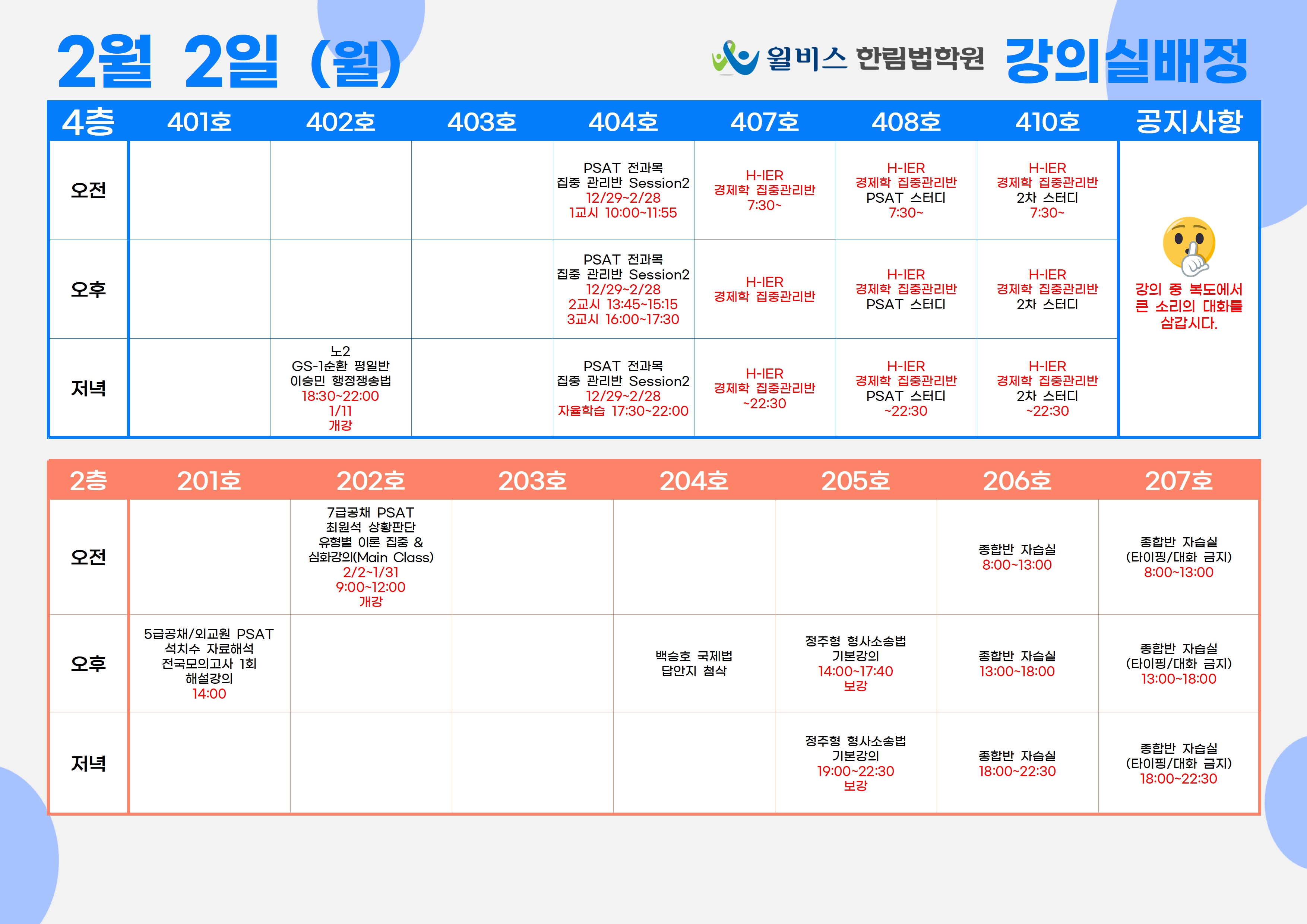 2월 2일(월) 강의실 배정표