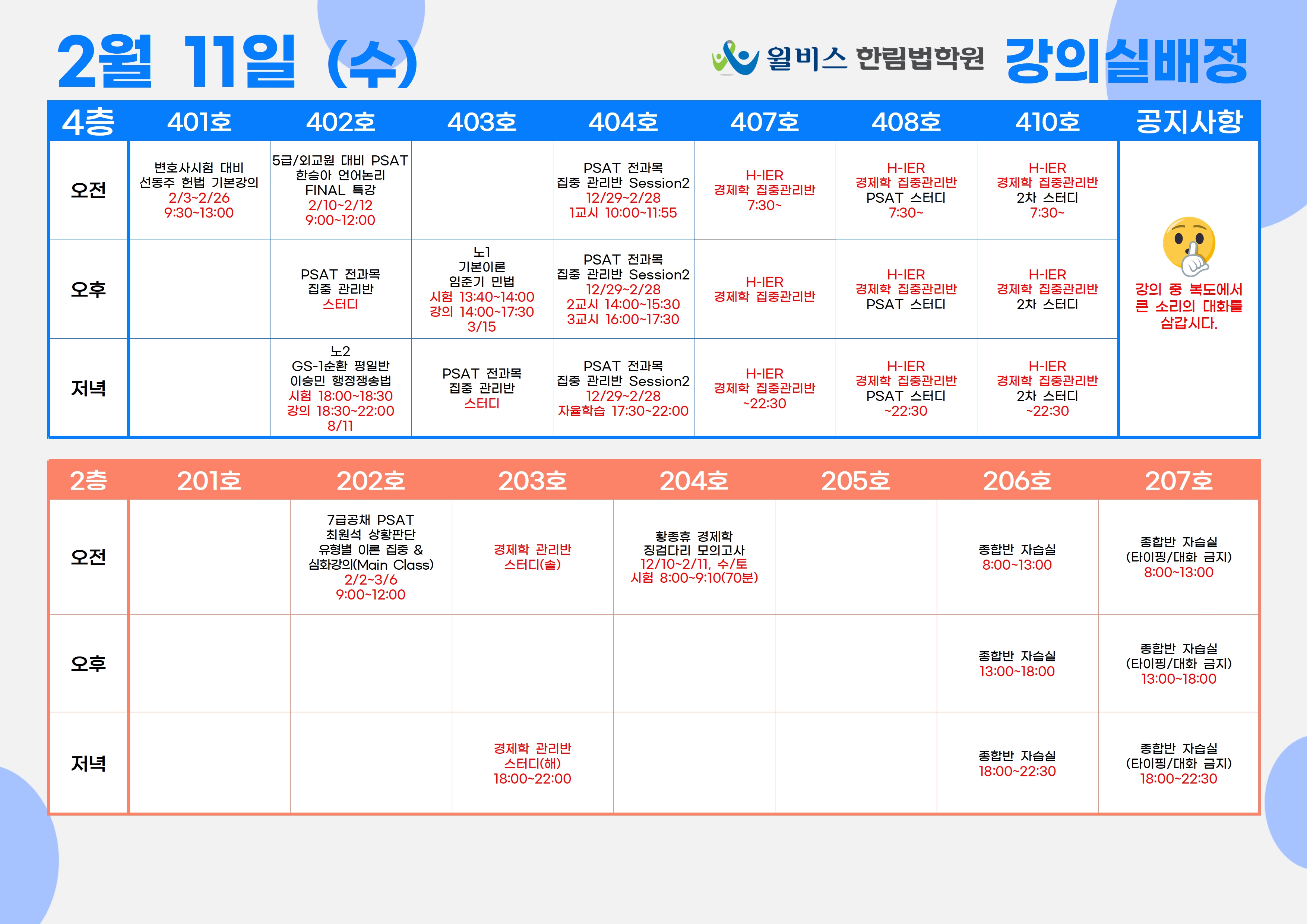 2월 11일(수) 강의실 배정표