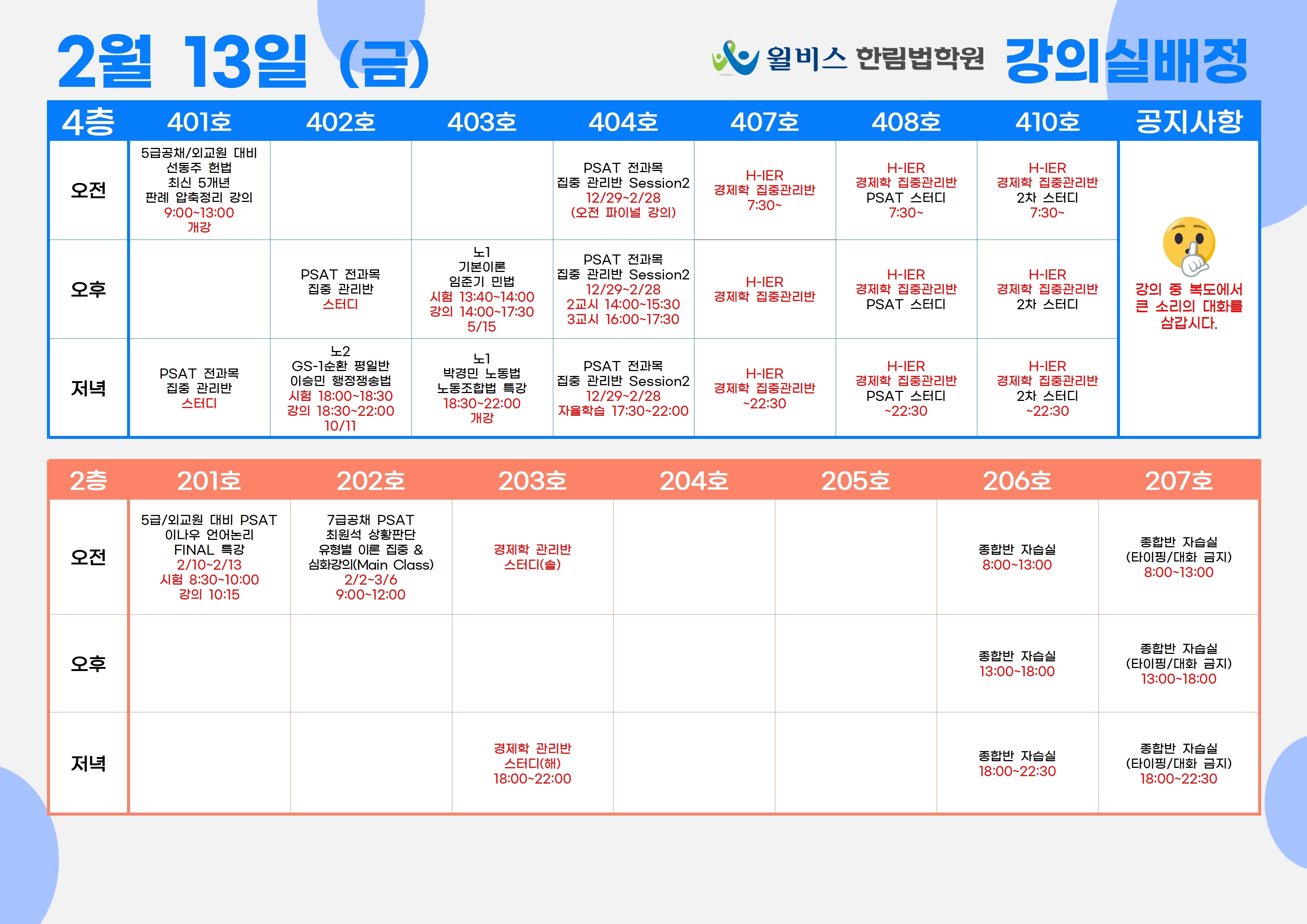 2월 13일(금) 강의실 배정표