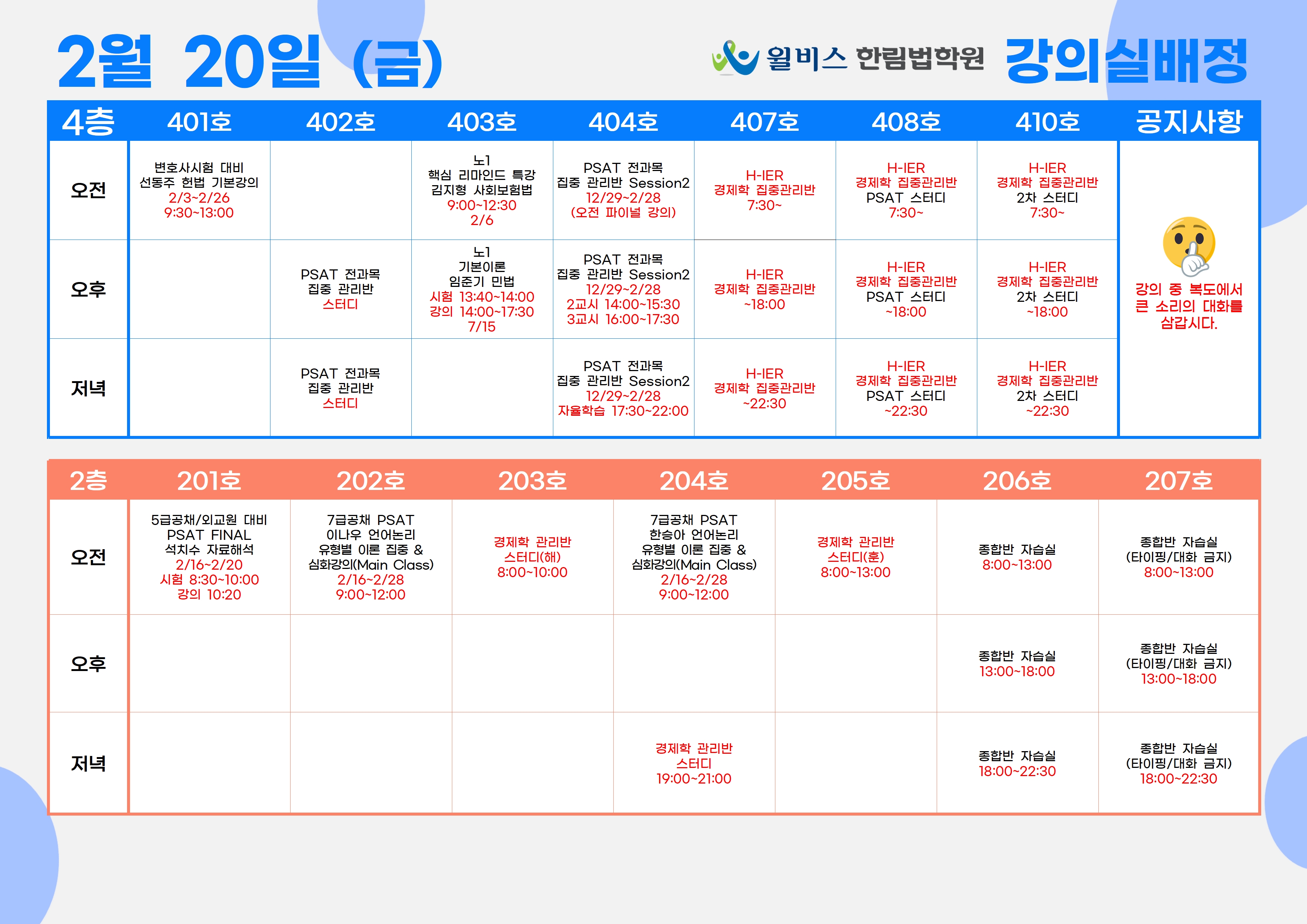 2월 20일(금) 강의실 배정표