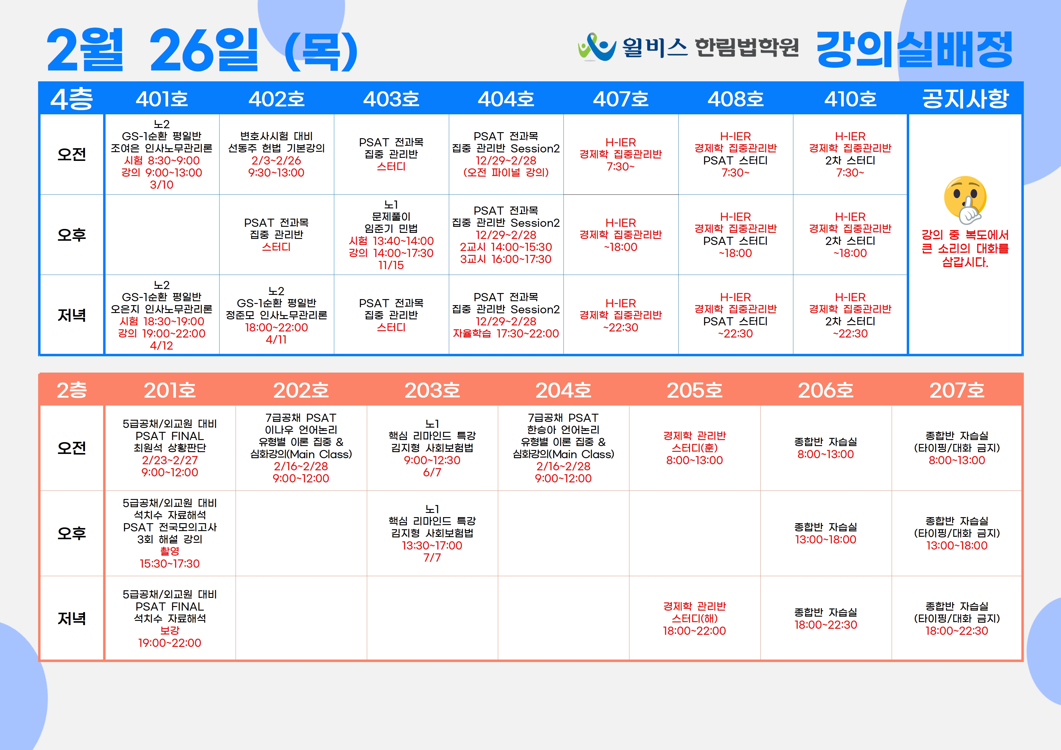 2월 26일(목) 강의실 배정표