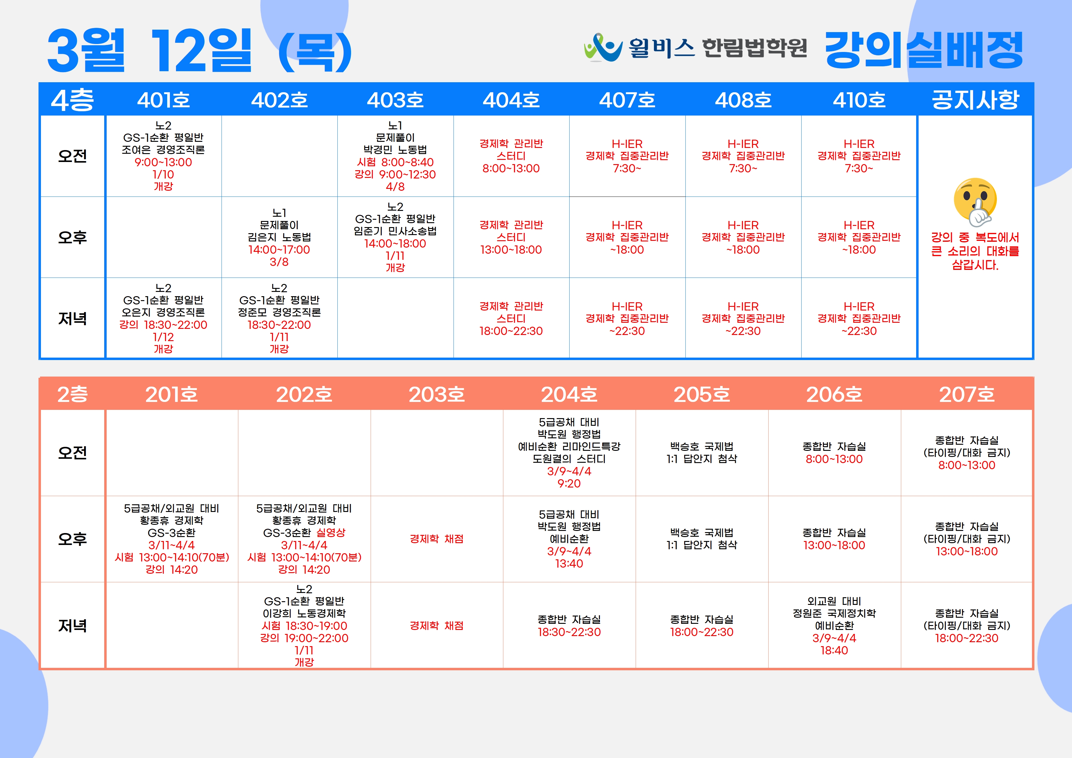 3월 12일(목) 강의실 배정표