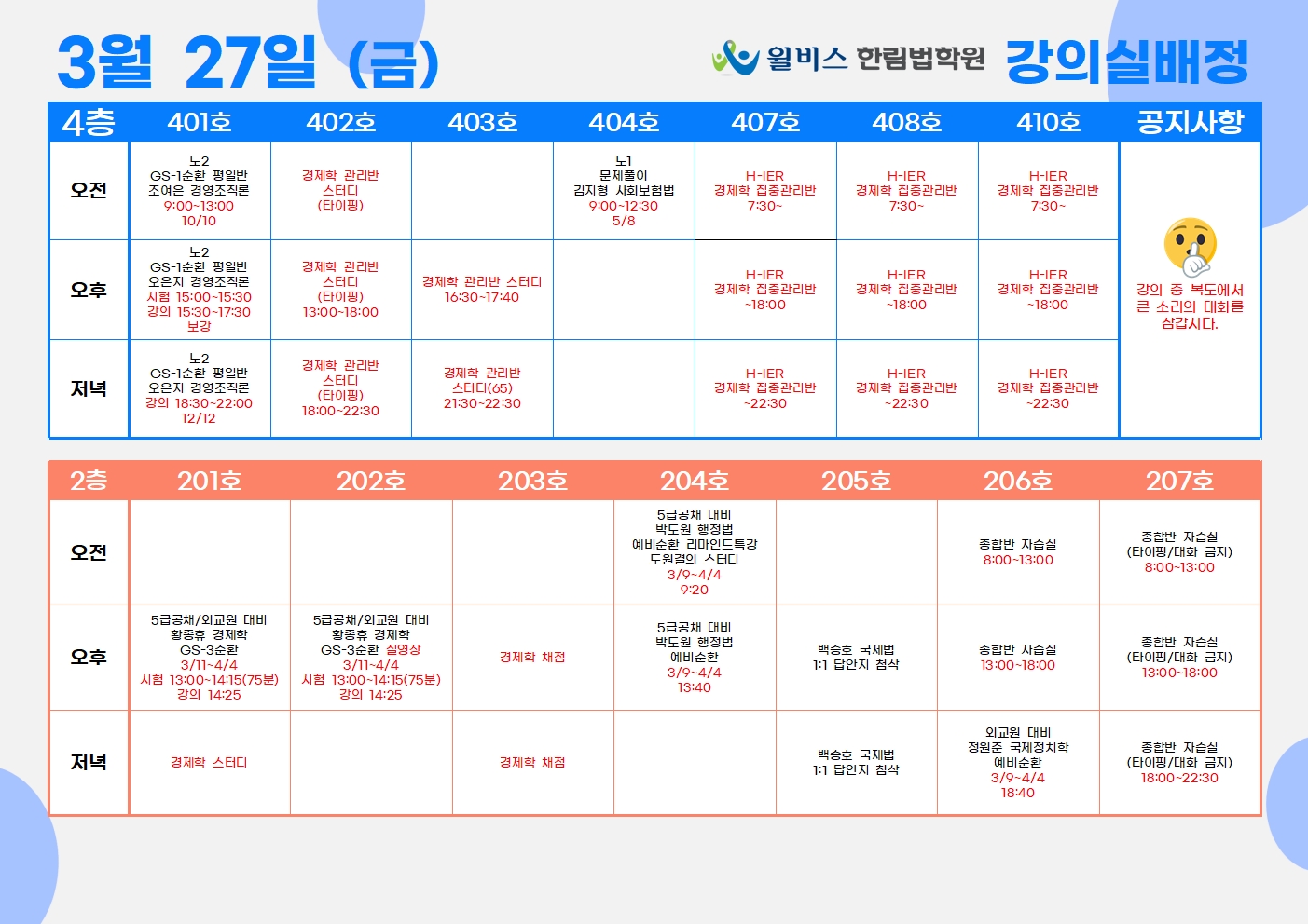 3월 27일(금) 강의실 배정표