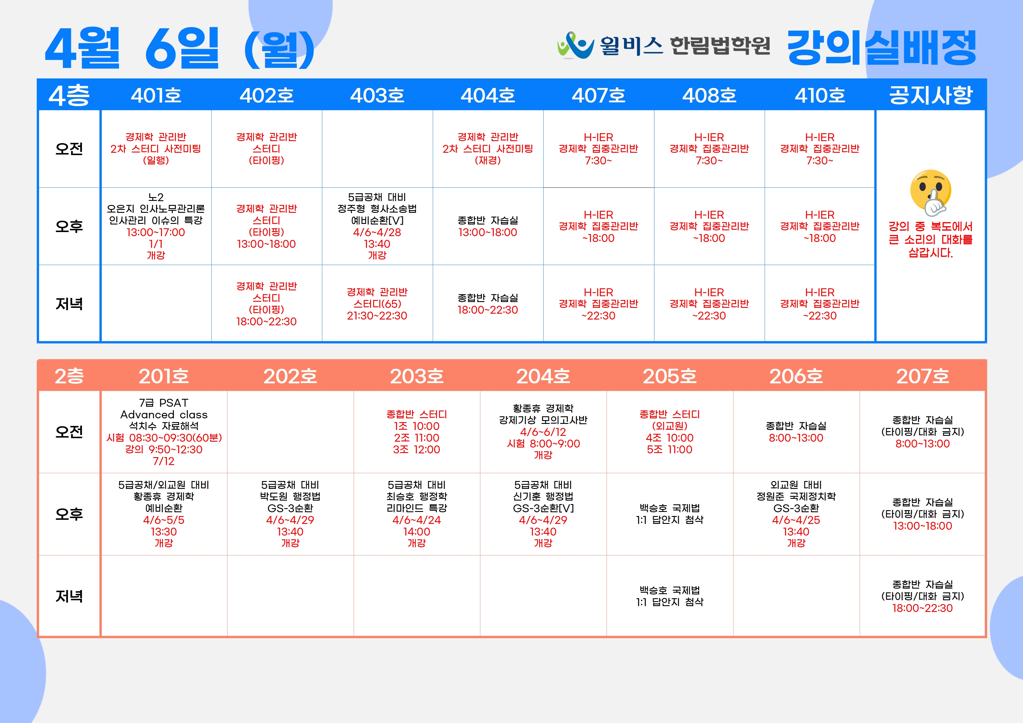 4월 6일(월) 강의실 배정표