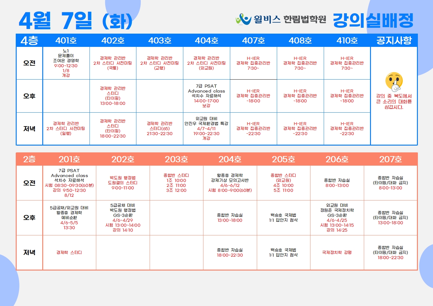 4월 7일(화) 강의실 배정표