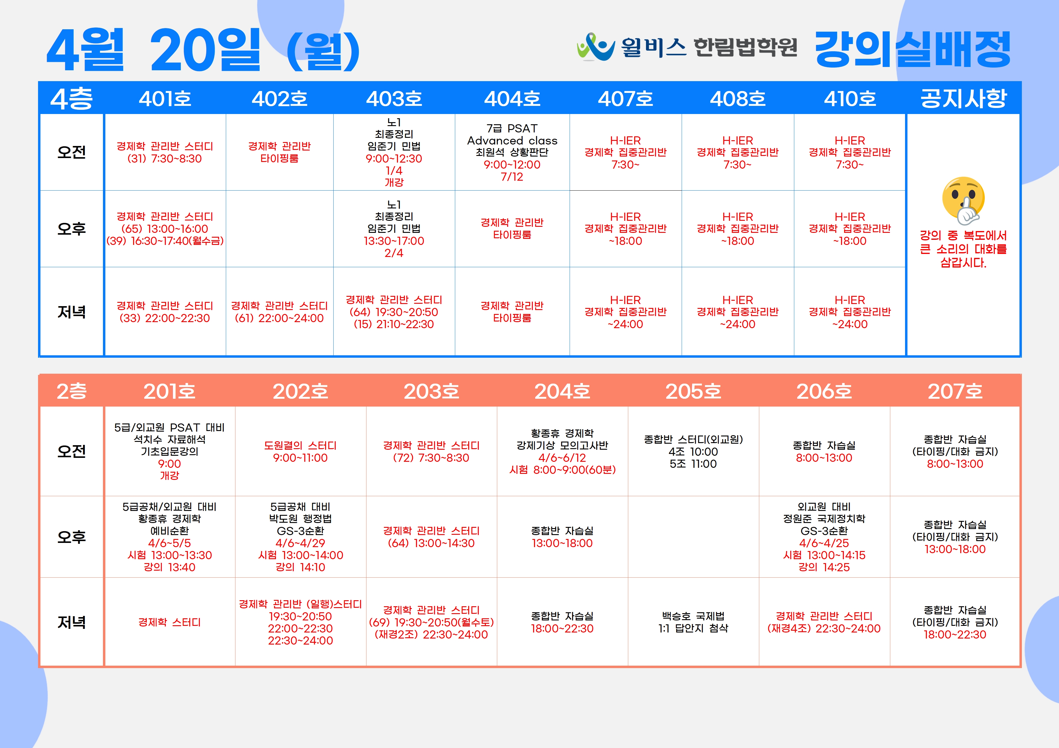 4월 20일(월) 강의실 배정표