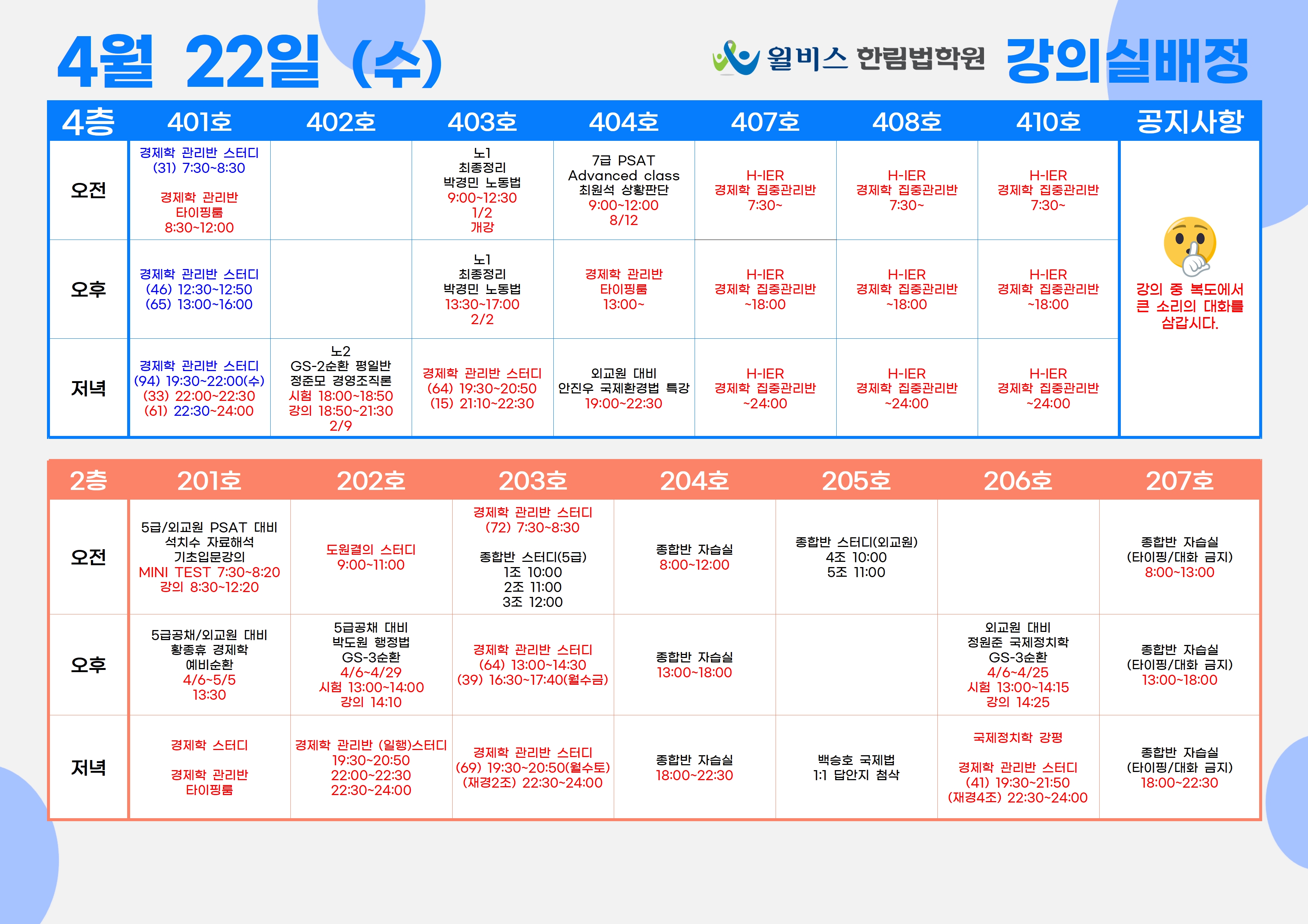 4월 22일(수) 강의실 배정표