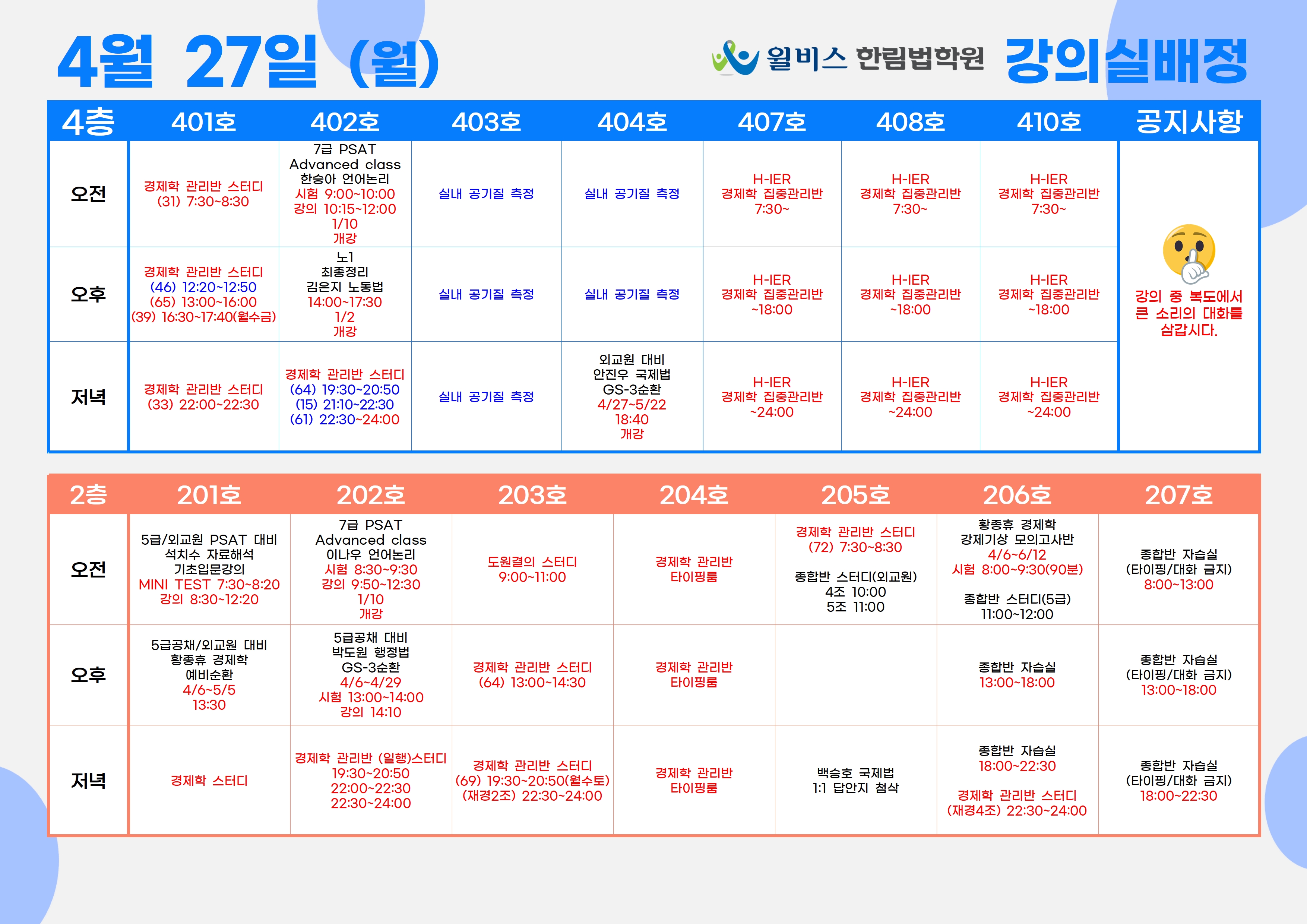 4월 27일(월) 강의실 배정표