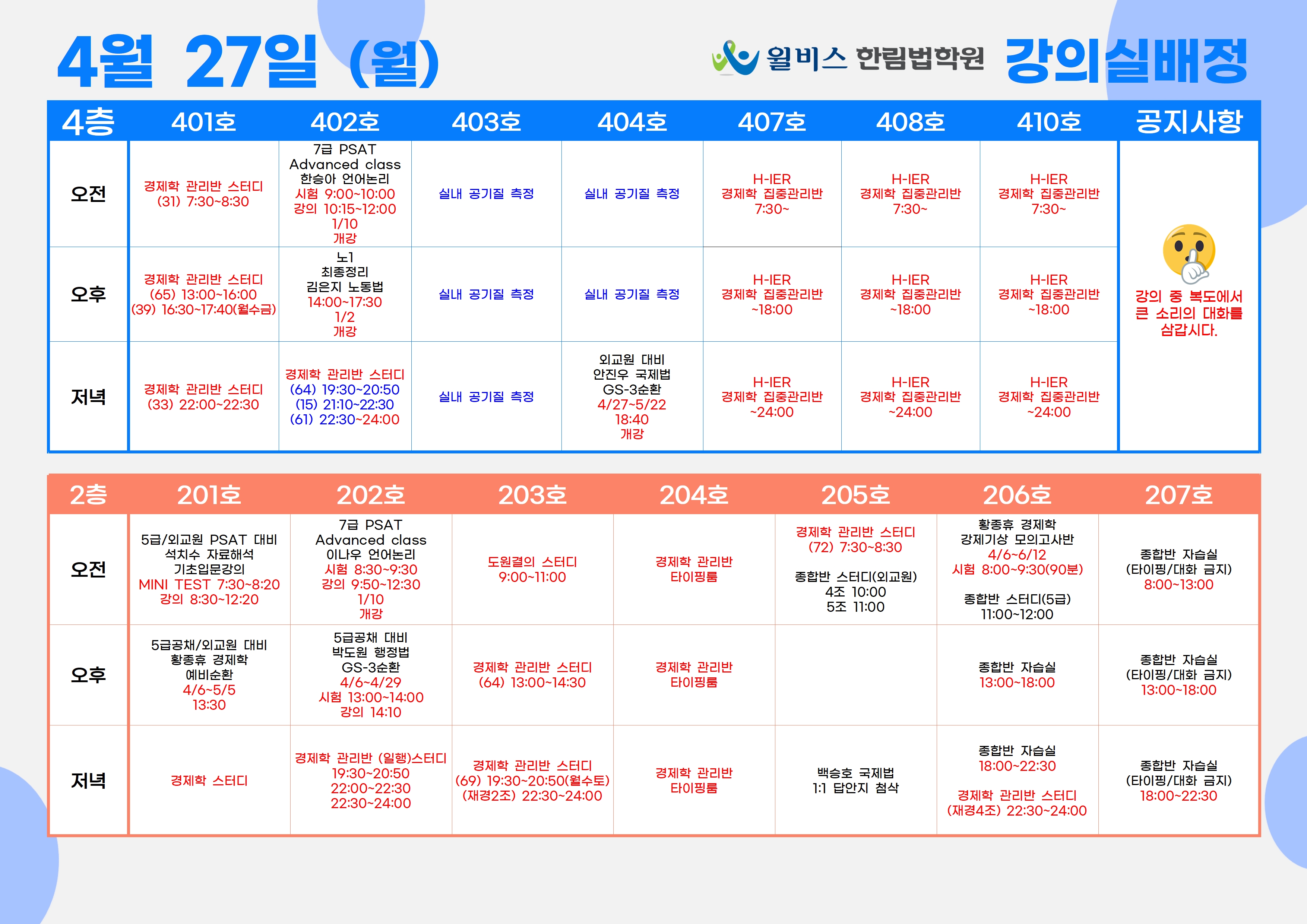 4월 27일(월) 강의실 배정표