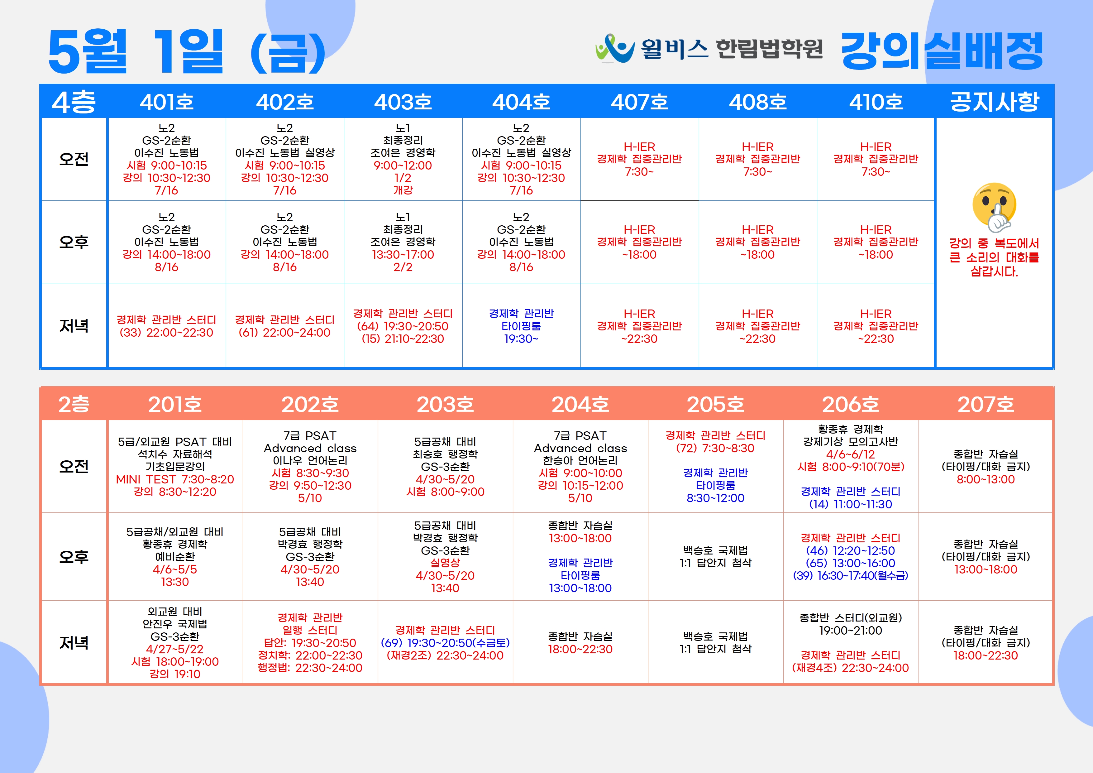 5월 1일(금) 강의실 배정표