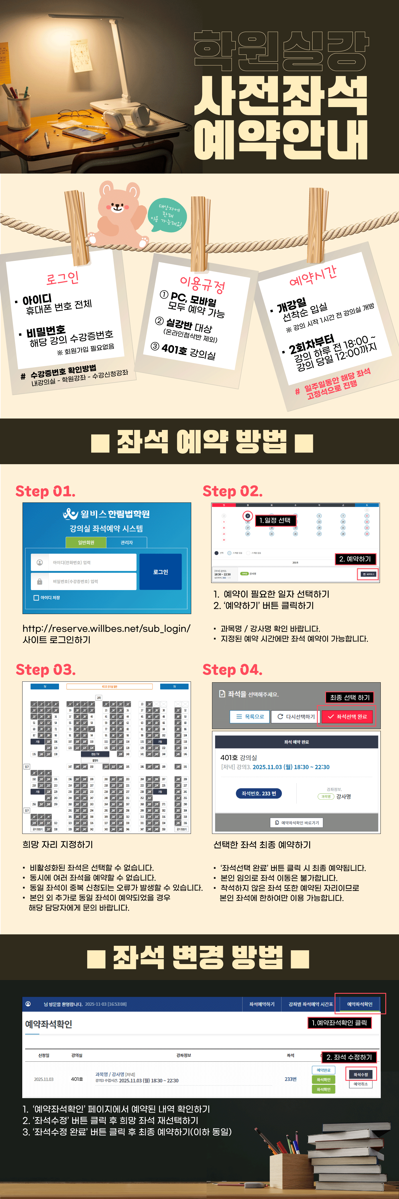 [공지] 한림법학원 강의실 사전 좌석 예약방법 안내