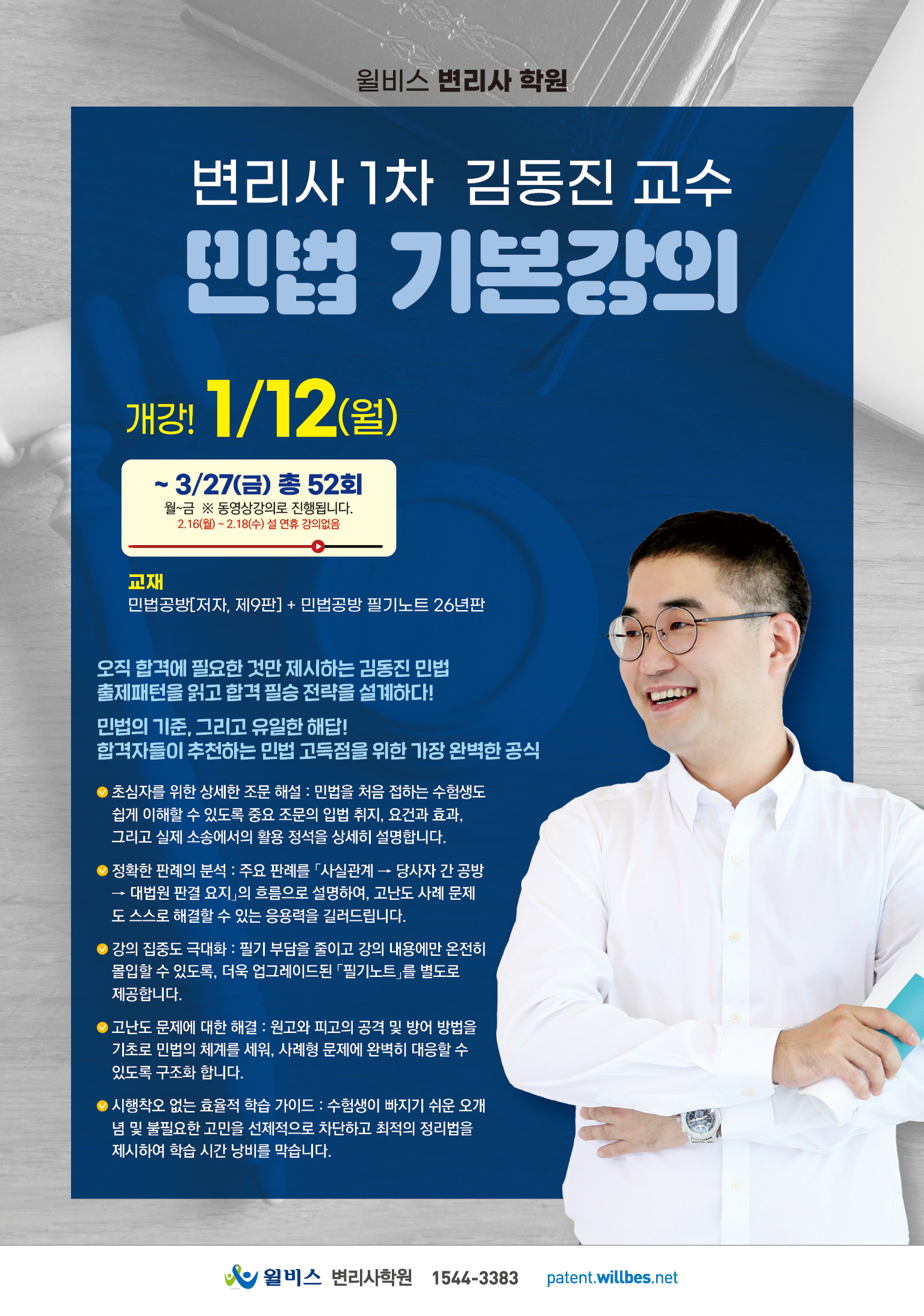 [1차] 김동진 교수 민법 기본강의(1.12, 월) <동영상 진행>