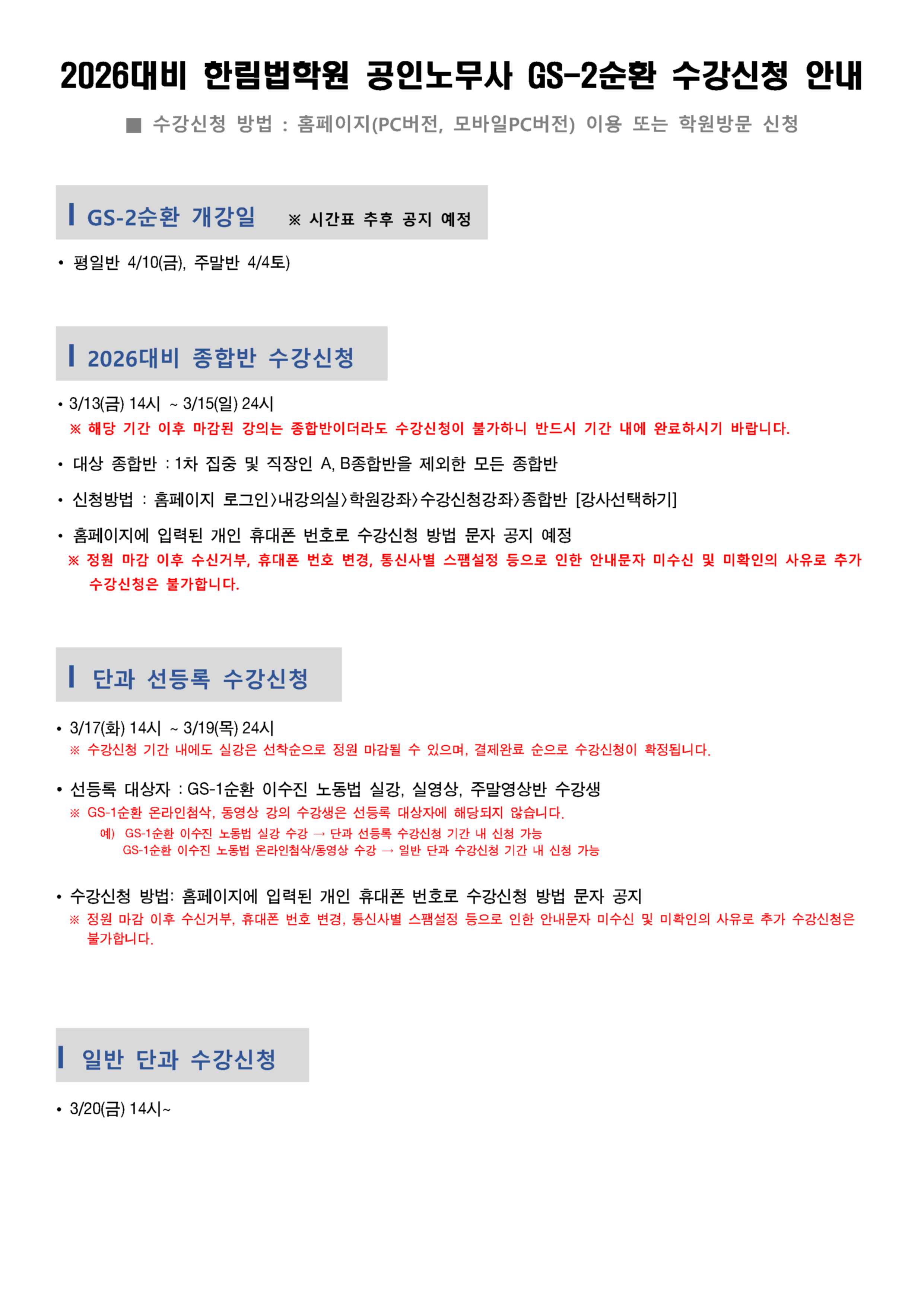 [공지] 2026대비 / GS-2순환 / 수강신청 일정