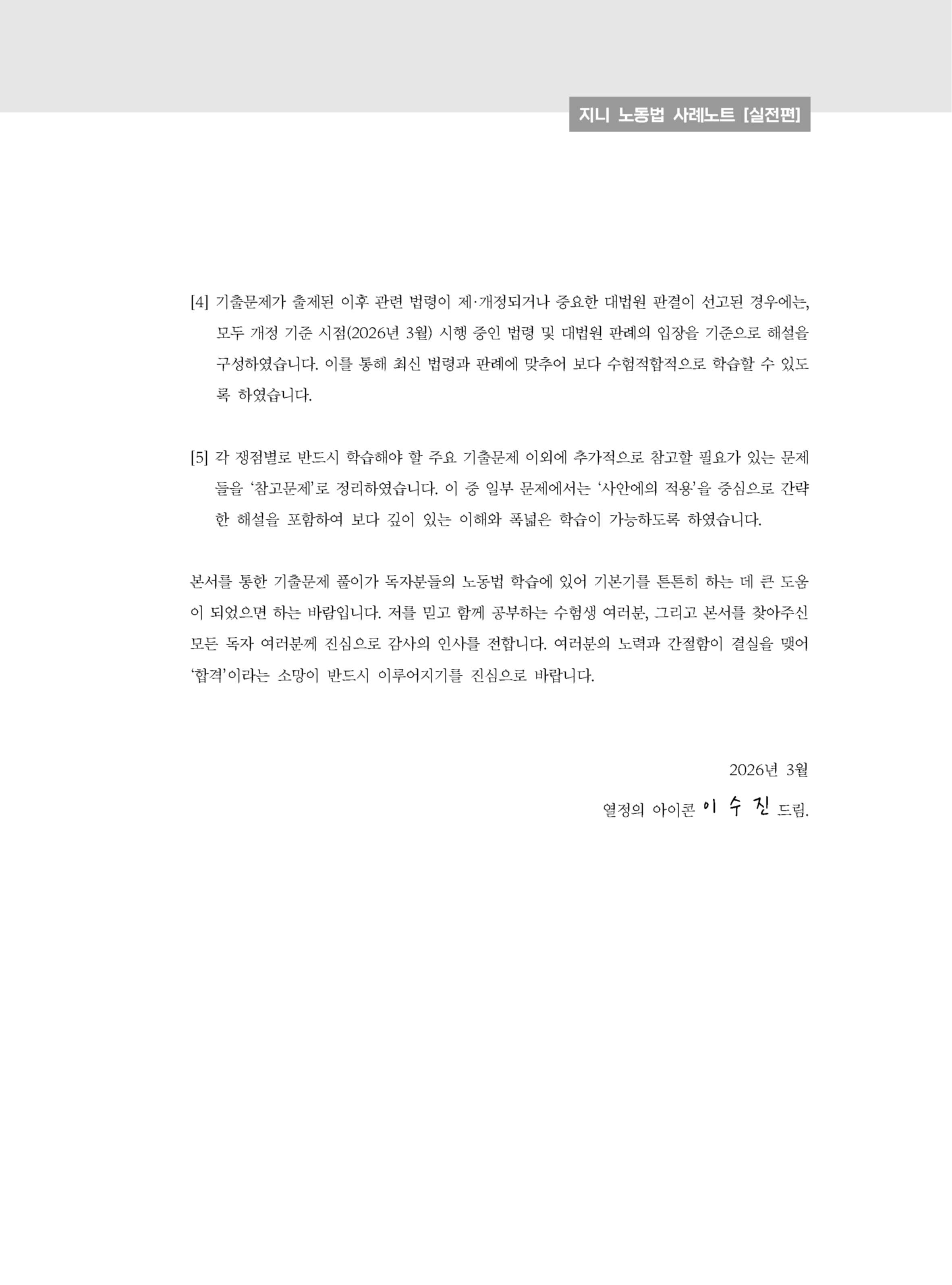 [신간안내] 2026대비 / 이수진 변호사·노무사 【지니 노동법 사례노트】 제3판 - 3/20(금) 출간