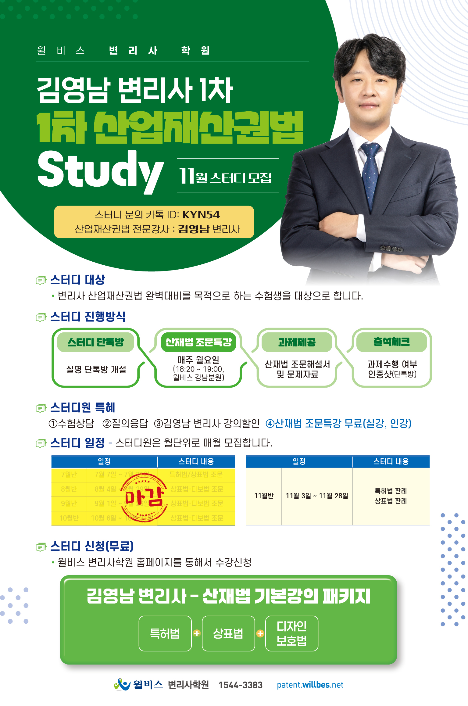 김영남 변리사 산업재산권법 조문판례 스터디 11월(무료신청)