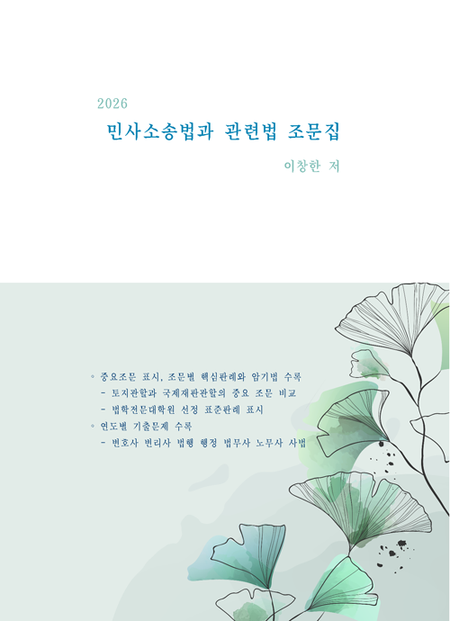 2025년부터는 전자책도 출간하고 있다. 전자책은 ‘여러 법령으로 바로가기(북마크)’와 ‘민사소송법 안에서 중요 조문 바로가기(북마크)’, ‘민법 안에서 중요 조문 바로가기(북마크)’ 만들어 두었으니, 독자들의 수험공부에 도움이 되길 바란다. 전자책의 자세한 기능은 이창한 카페의 [민사소송법 교재] 메뉴에 있는 영상 및 사진을 참조하기 바란다. 아울러 아래 머리말도 참조하기 바란다. 올해도 본 강사의 강의를 수강하고 합격한 수석, 최연소, 고득점합격자들의 합격수기 및 영상을 본 강사 카페에 업로드했으니 참조하기 바란다.